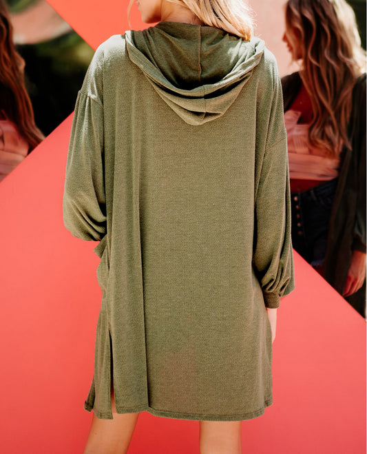 Pointelle Knit Raglan Sleeve Hooded Sweater