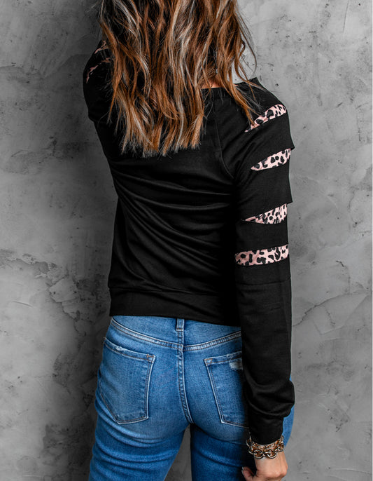 LOVE Sequin Pumpkin Leopard Print Cut Out Sleeve Sweatshirt