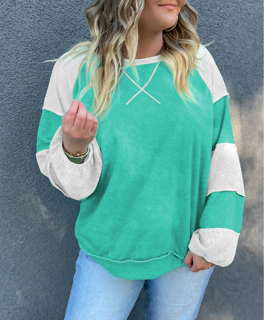 Colorblock Patchwork Cross Seam Plus Sweatshirt
