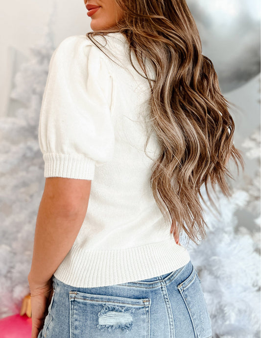 Tinsel Christmas Tree Graphic Puff Sleeve Sweater