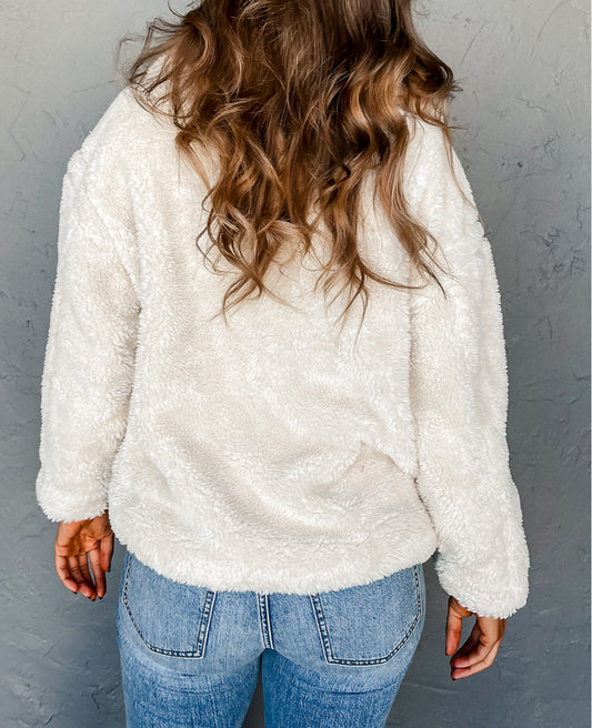 Faux Fur Button Pocketed Lapel Collar Jacket