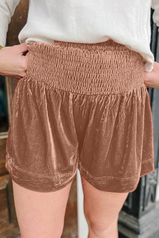 Smocked High Waist Velvet Shorts