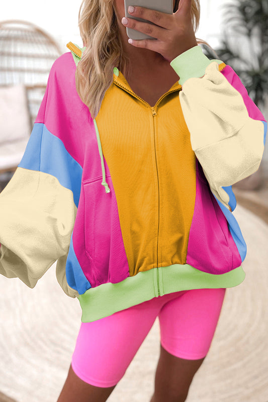 Oversized Colorblock Patchwork Full Zipped Hoodie