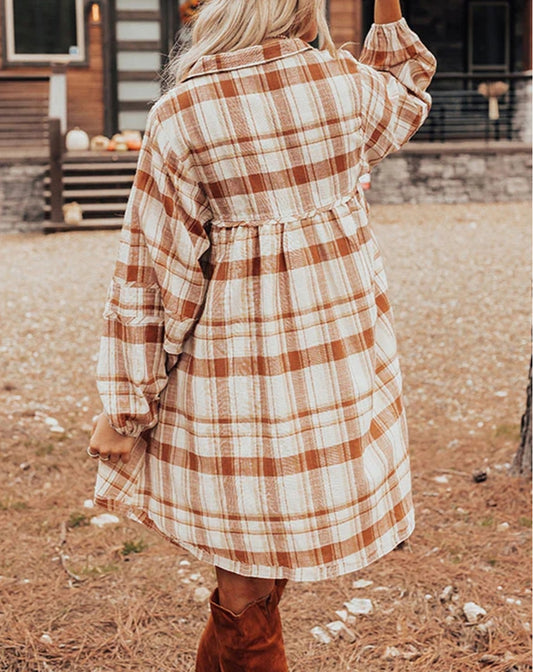 Checkered Print Loose Fit Buttoned Hooded Shacket