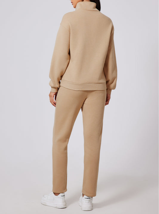 Solid Half Button Sweatshirt and High Waist Sweatpants Set