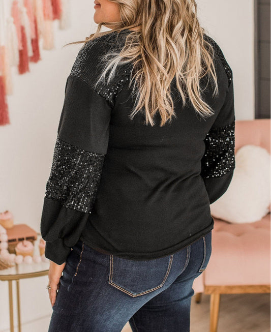 Game Day Rugby Football Graphic Sequin Patchwork Sleeve Plus Size Top