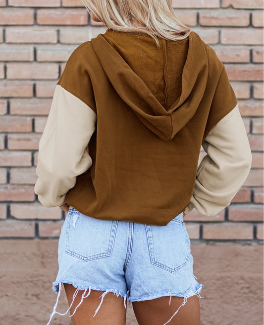 Color Block Half Zip Kangaroo Pocketed Hoodie