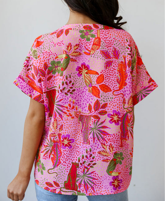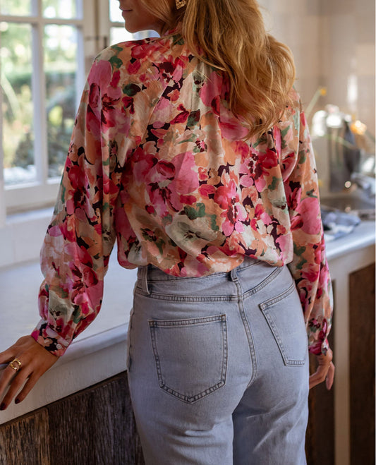 Floral Print Ruffled Stitch Buttoned Loose Fit Shirt