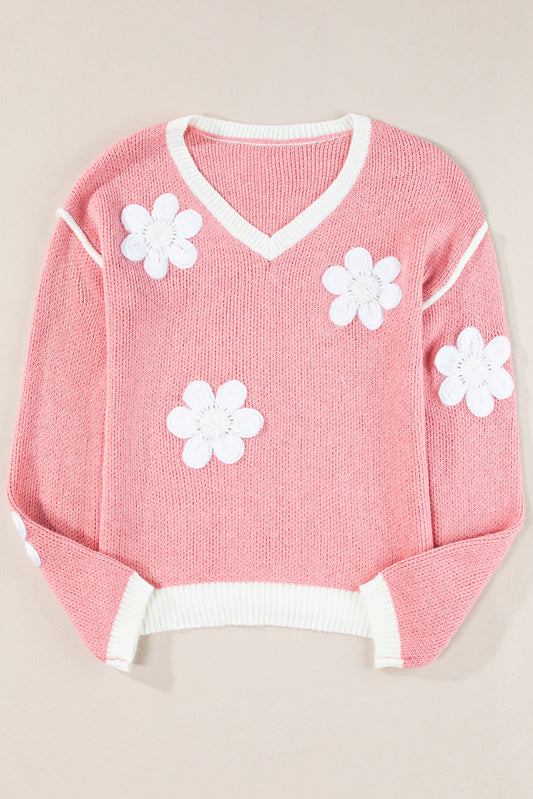 Sequin Flower Bracelet Sleeve Crew Neck Top