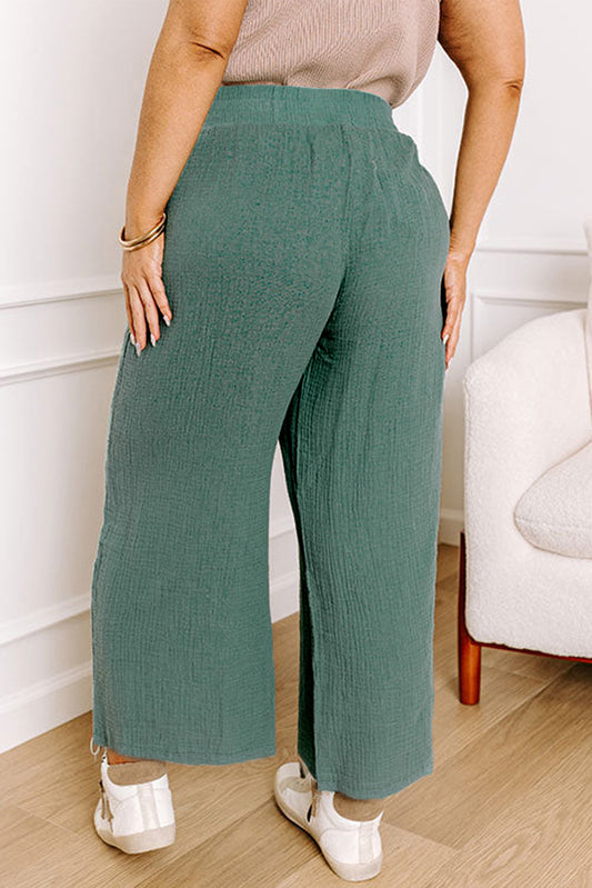 Plus Size Textured Frayed Edge Wide Leg Pants