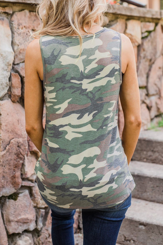 Camo Print Twist Hemline Tank Top