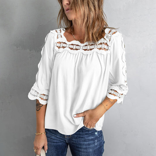 Crochet Trim Hollow-out Blouse