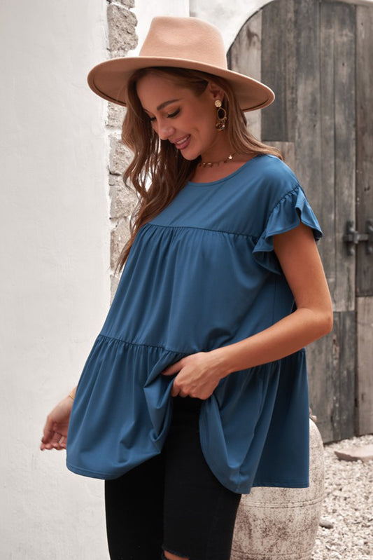 Short Sleeve Keyhole Ruffled Babydoll Top