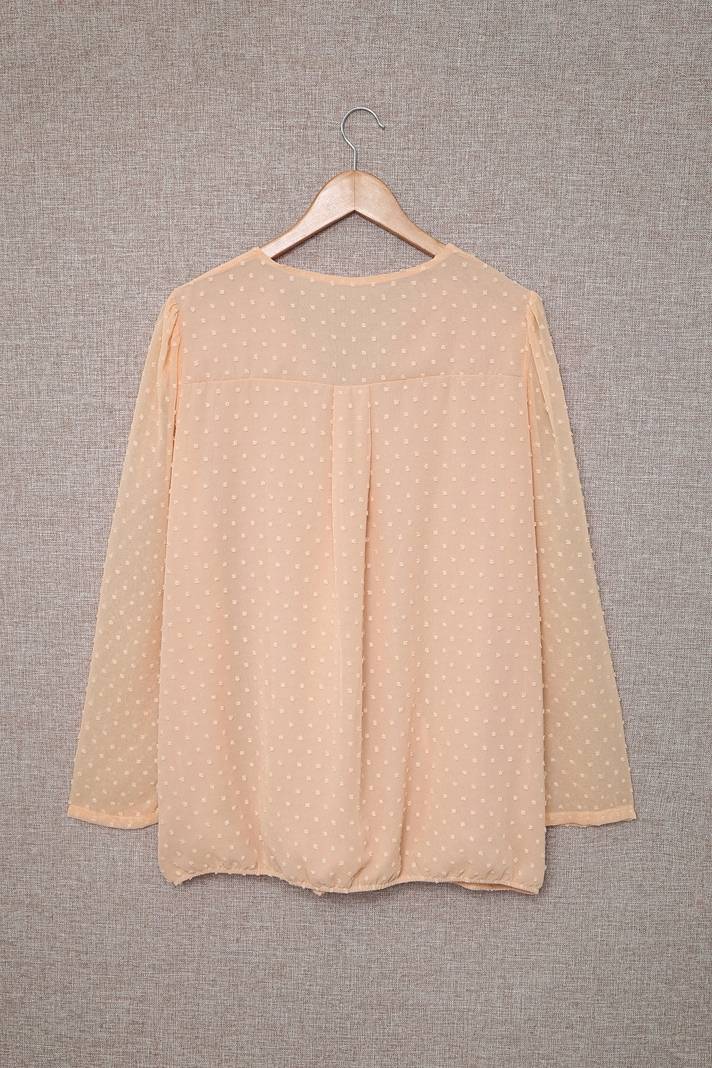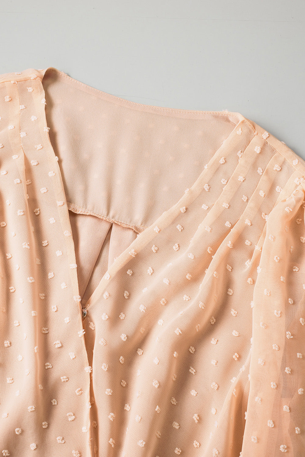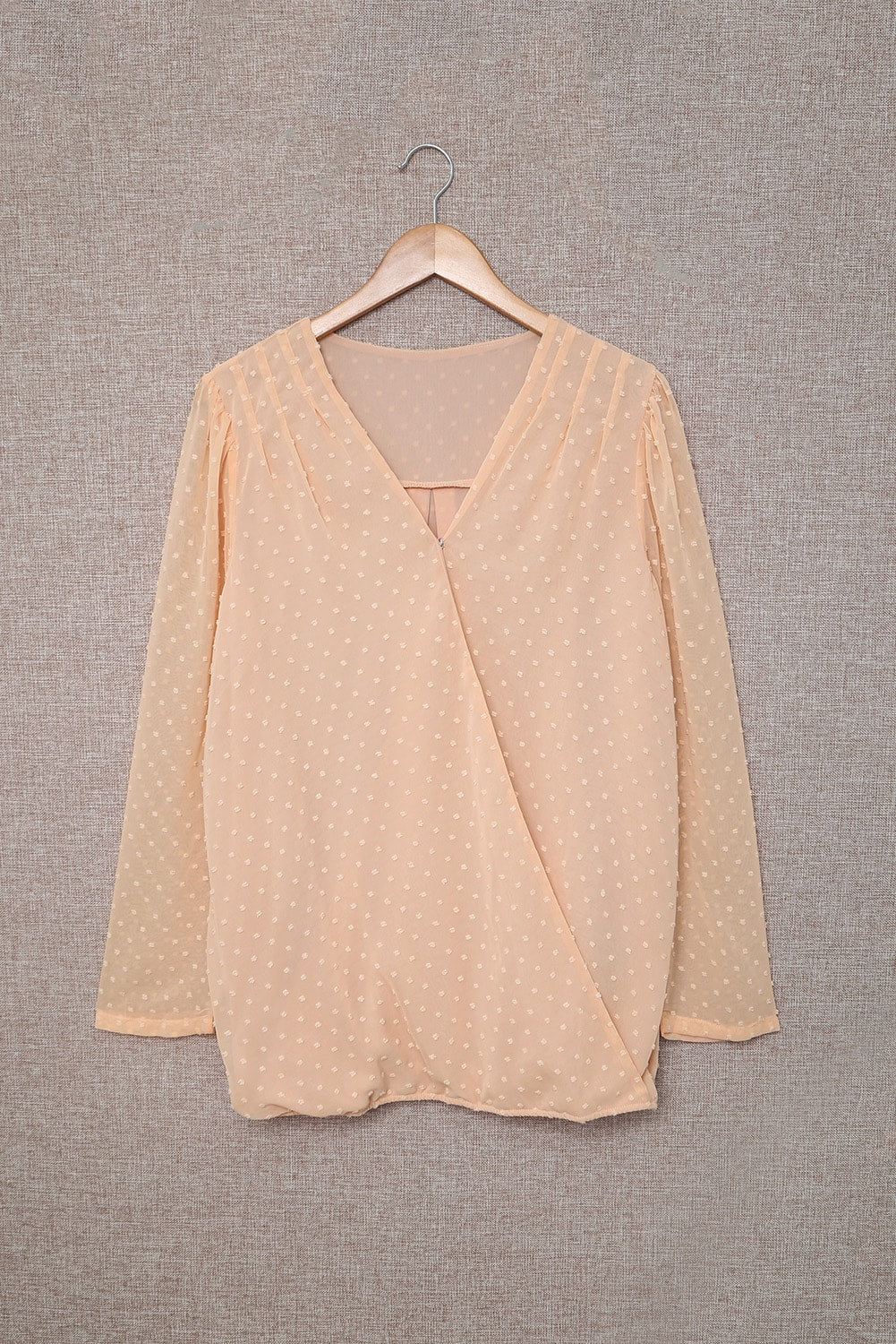 Apricot Swiss Dot Wrap V Neck Long Sleeve Top