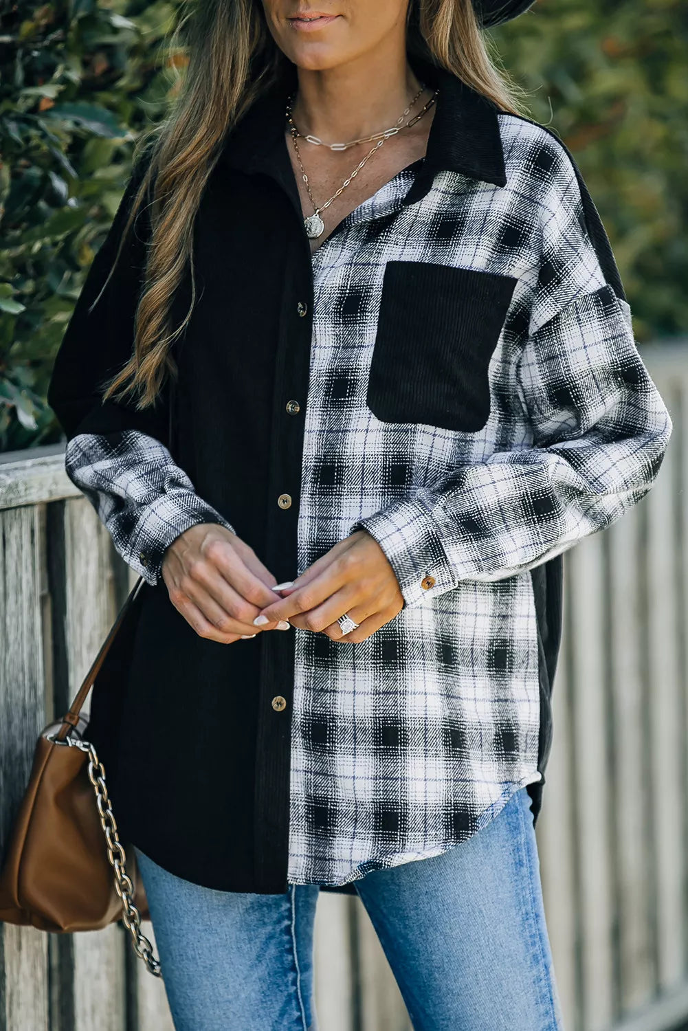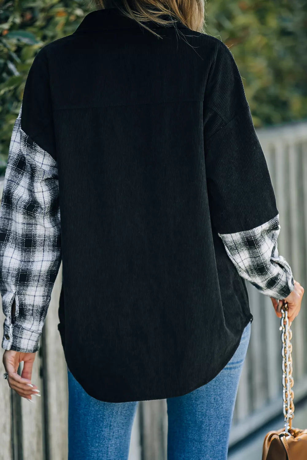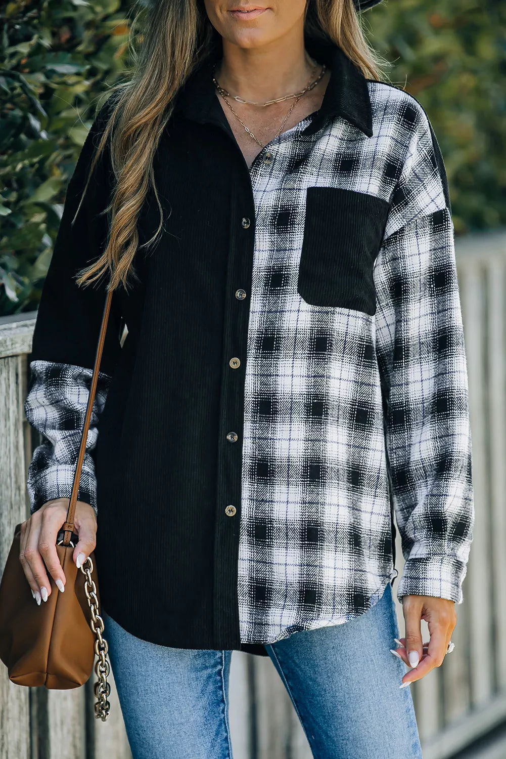 Plaid Color Block Button-up Oversize Corduroy Shirt