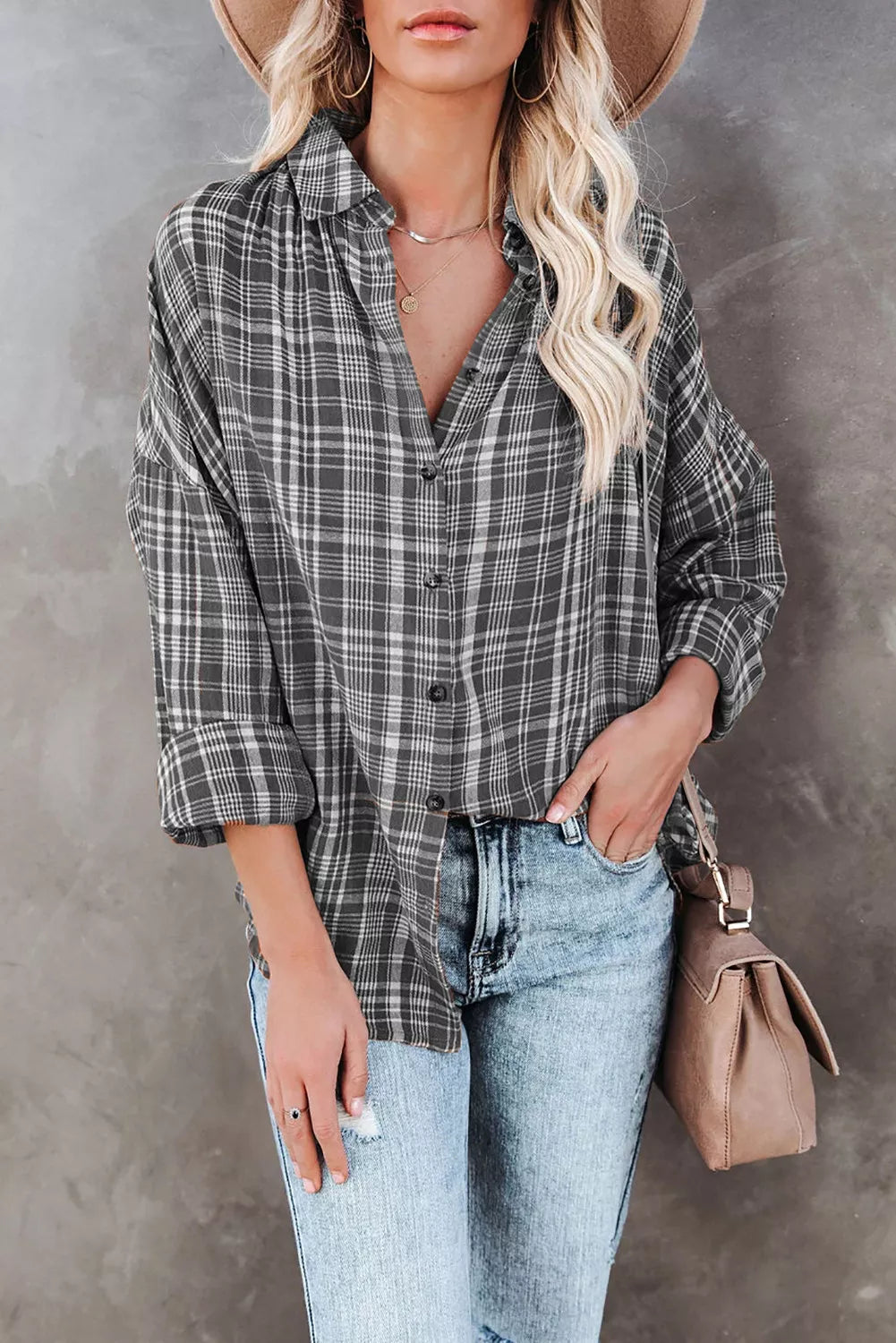 - •This Relaxed Fit Plaid Button Shirt has a collared neck and a rounded hem