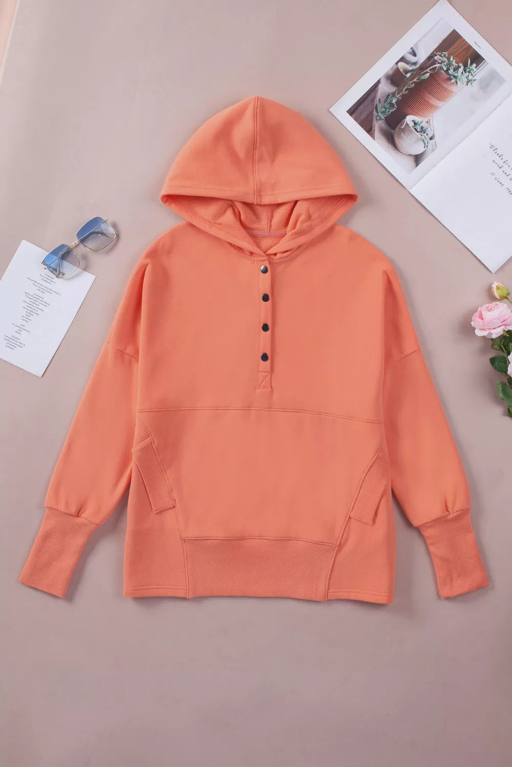 - Our Batwing Sleeve Pocketed Henley Hoodie comes in different solid colors and sizes