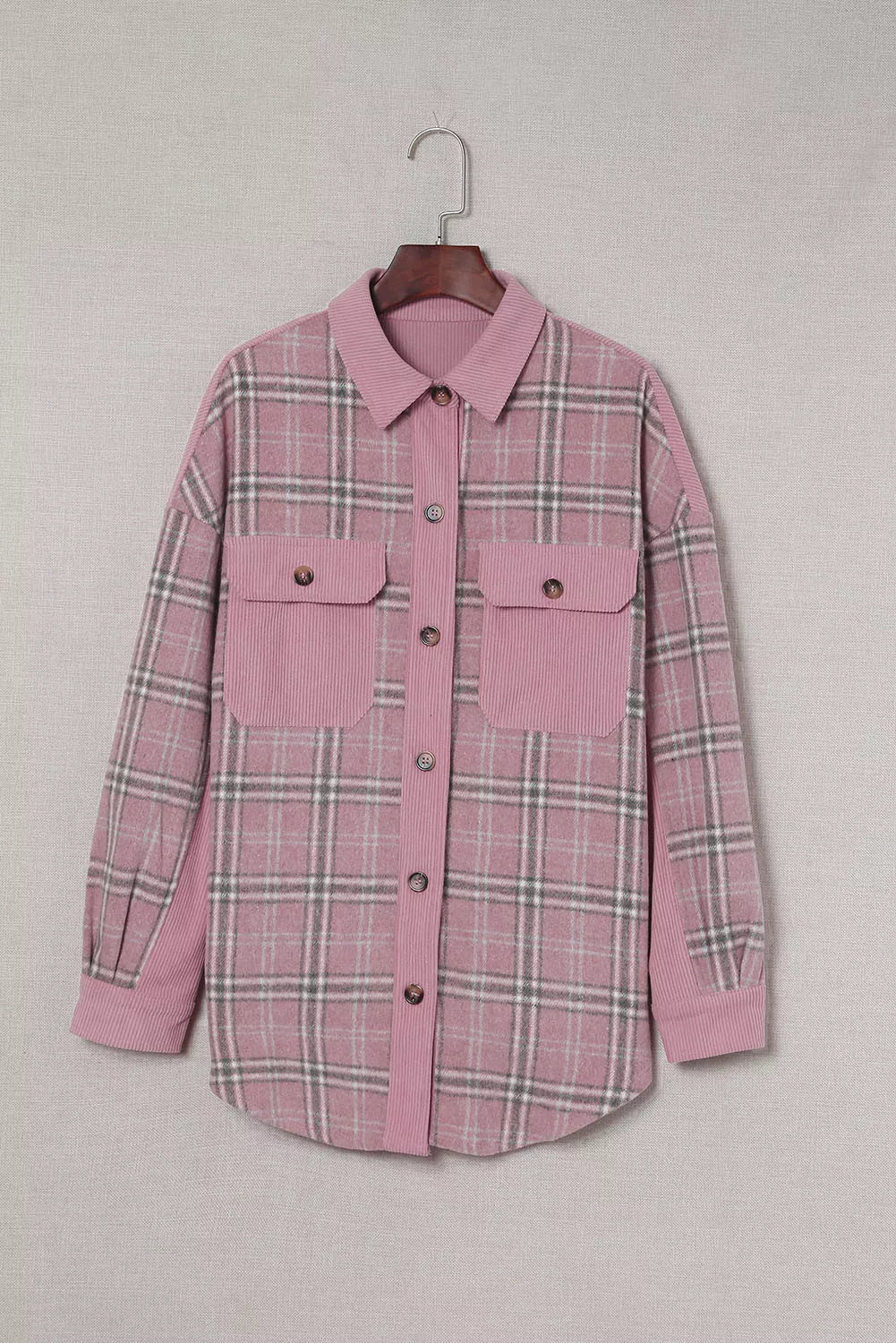 - Corduroy and plaid pattern made this shacket in a relaxed fit style