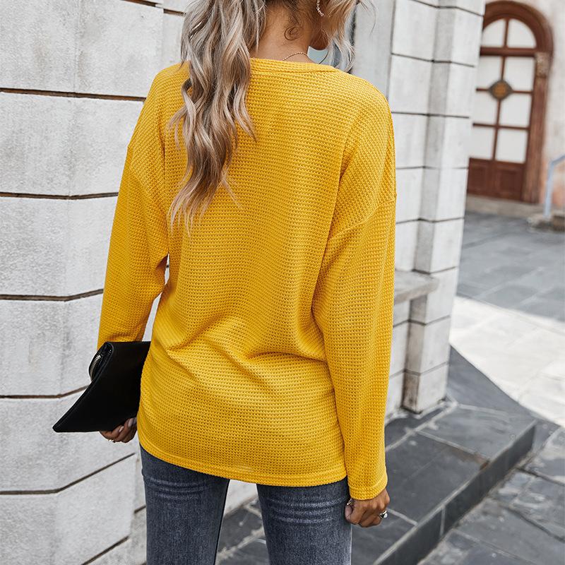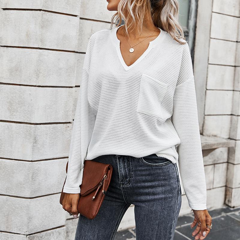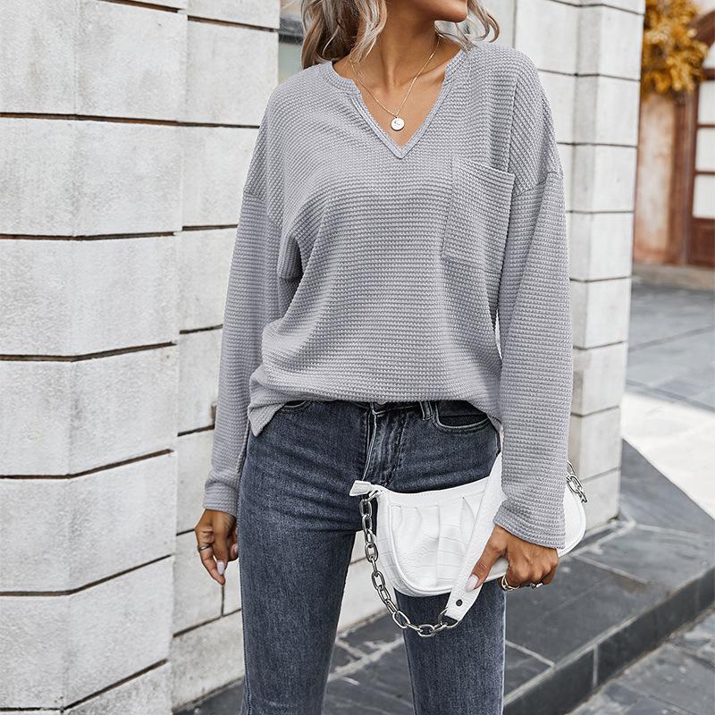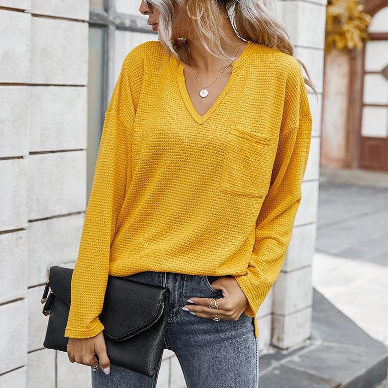 Simple solid color V-neck blouse