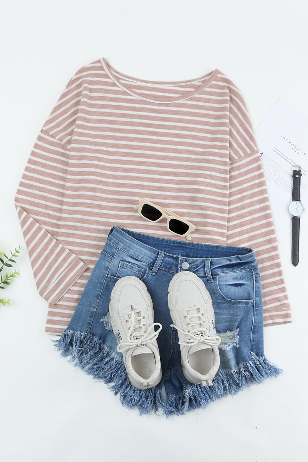 - Our Striped Print Drop Shoulder Long Sleeve Top pairs best with boyfriend denim