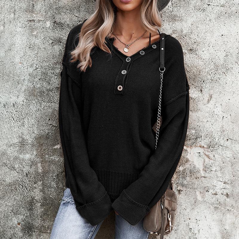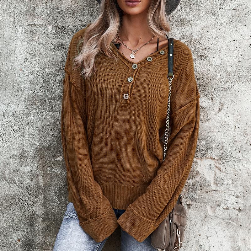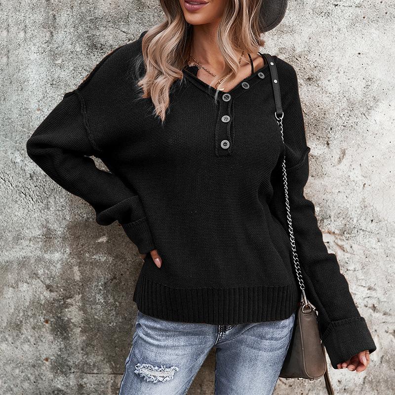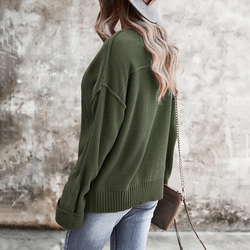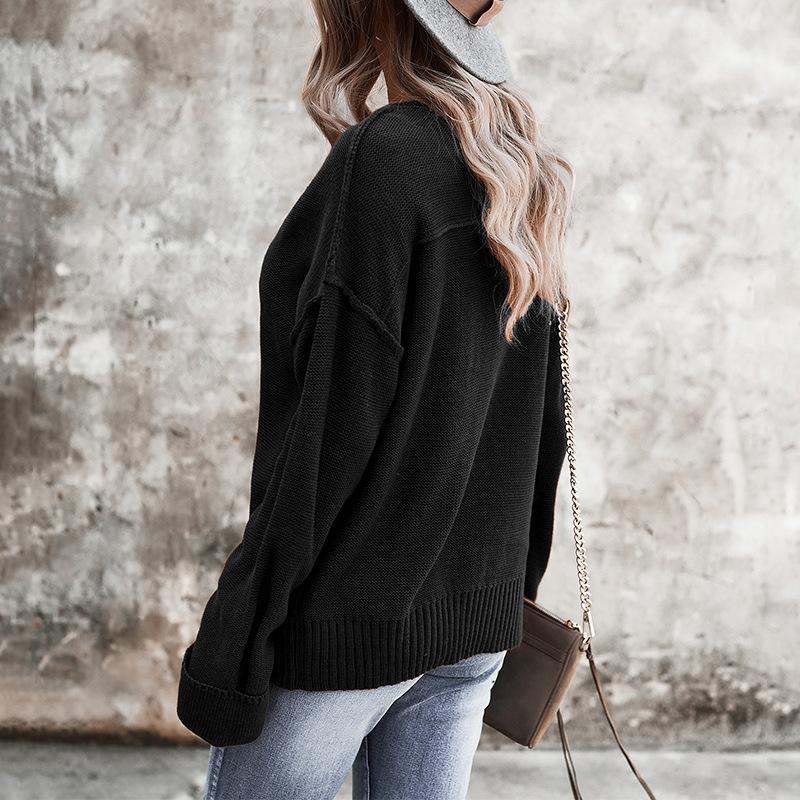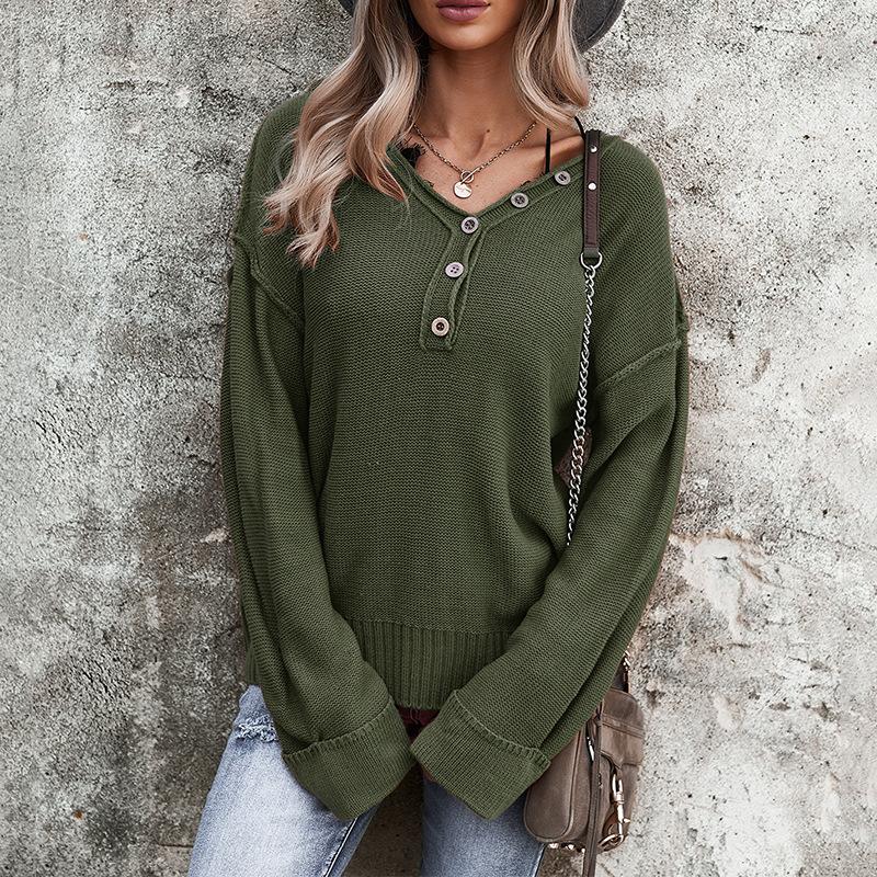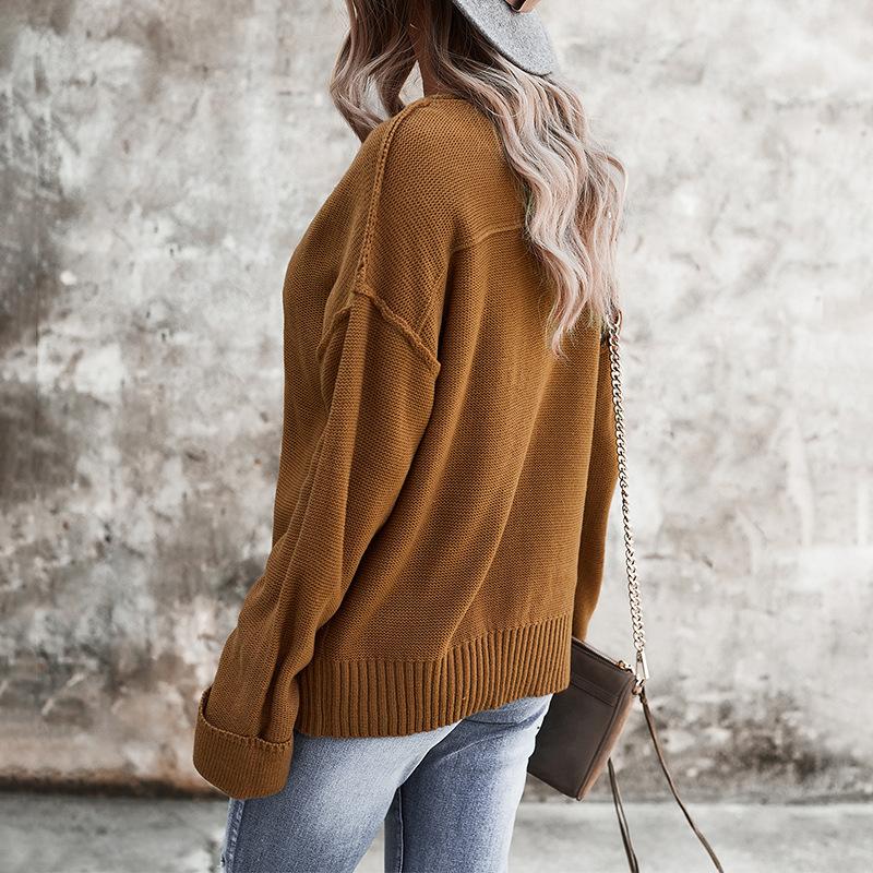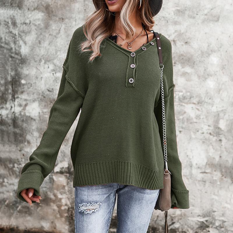 - Fall and winter temperament commuter solid color V-neck long-sleeved single-breasted sweater