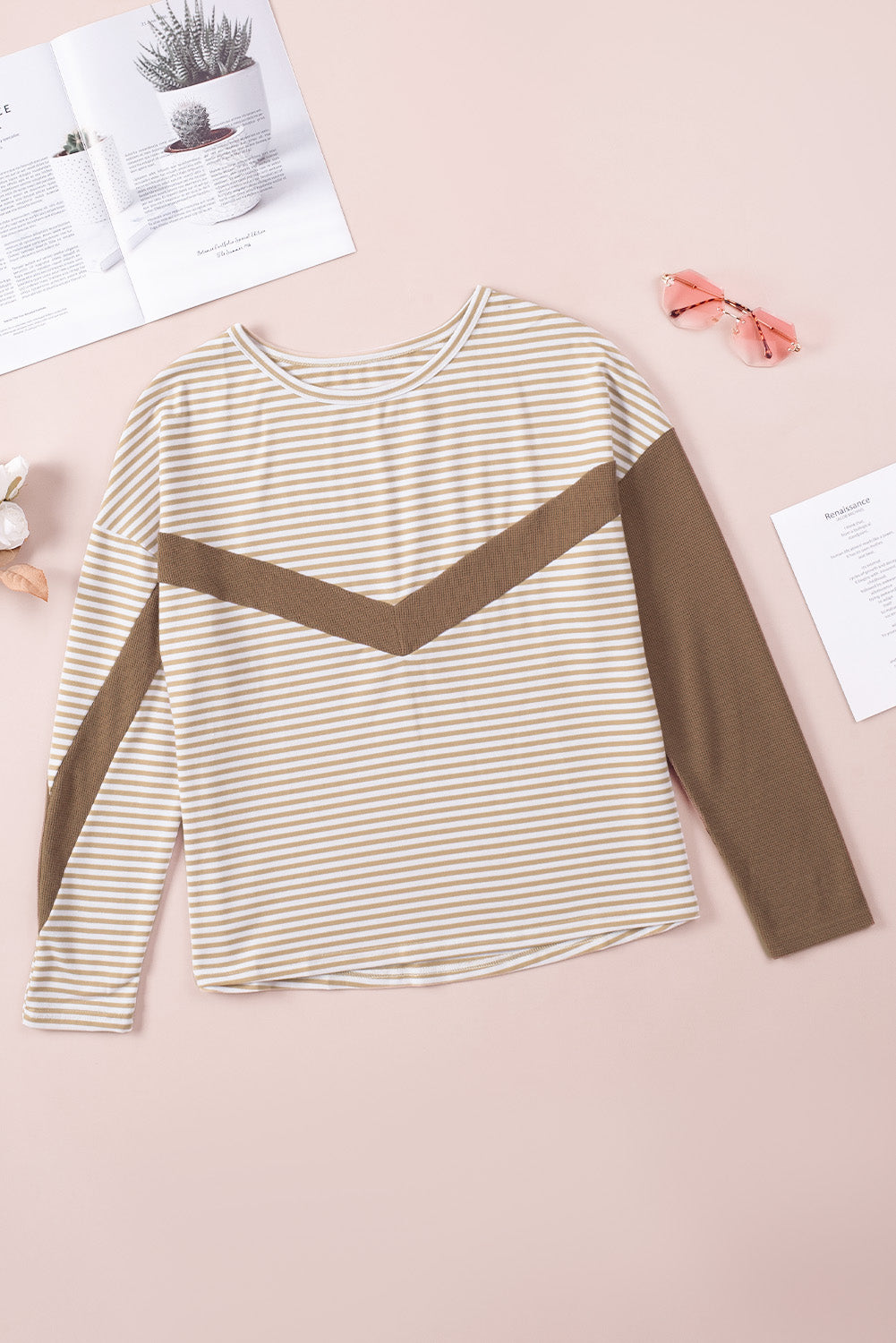 Featured with a crew neck, long sleeves, textured patchwork and regular silhouette