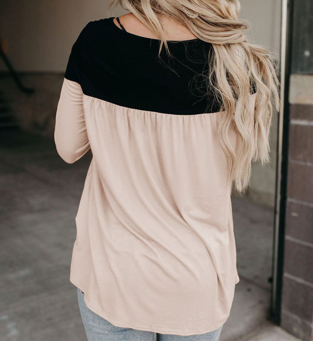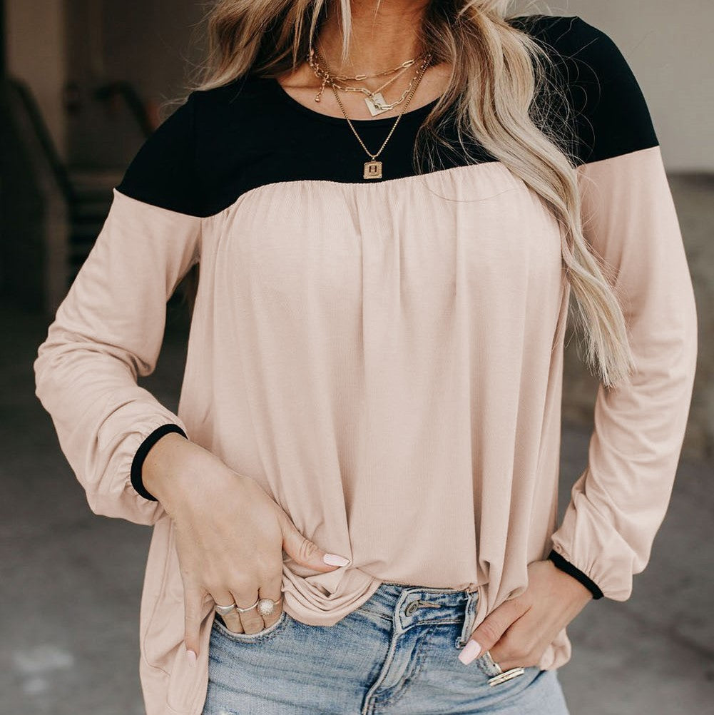 Round Neck Long Sleeve Color Block Tunic Top