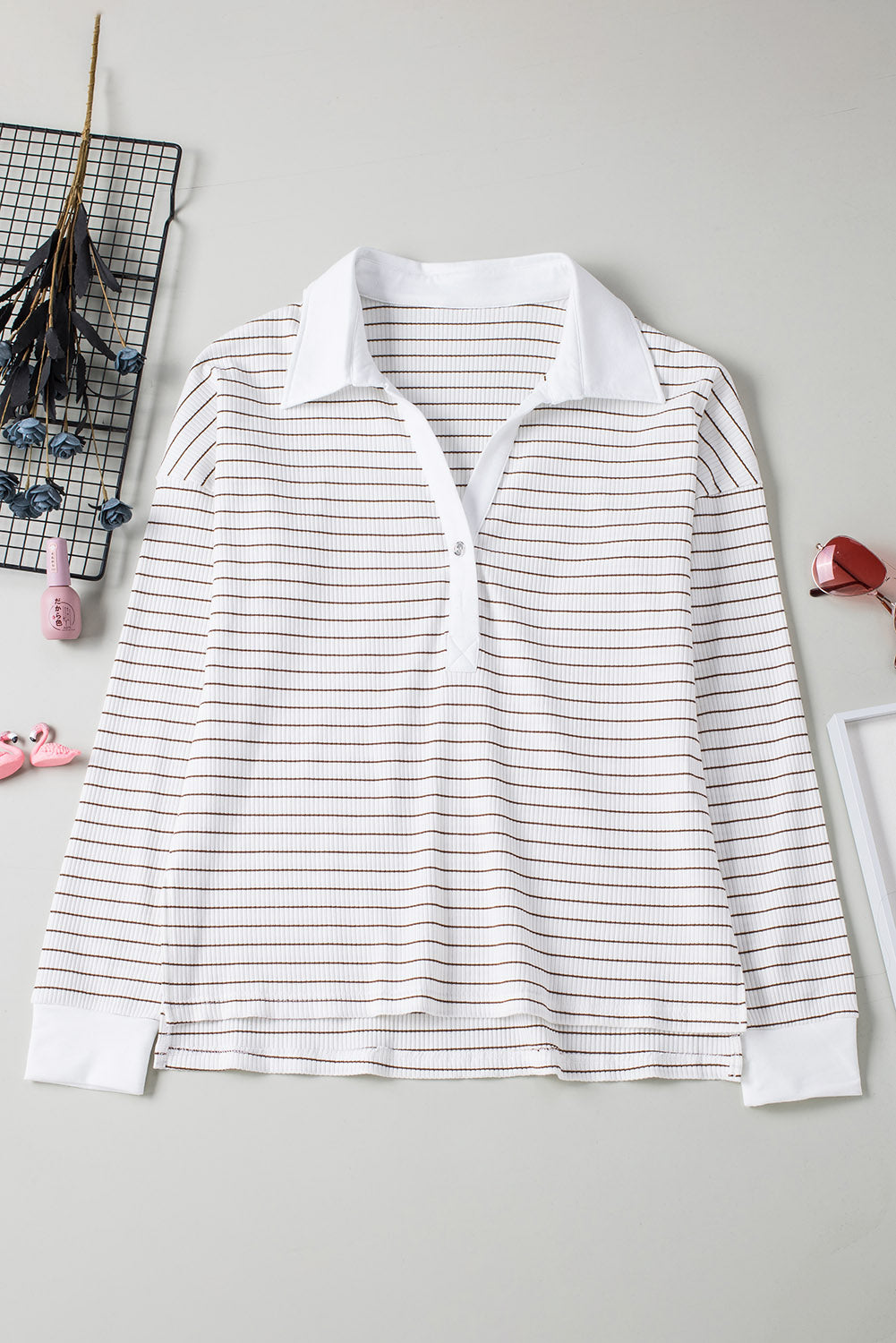 - •We are in love with our Striped Ribbed Knit Polo Top, it's such a cute basic
