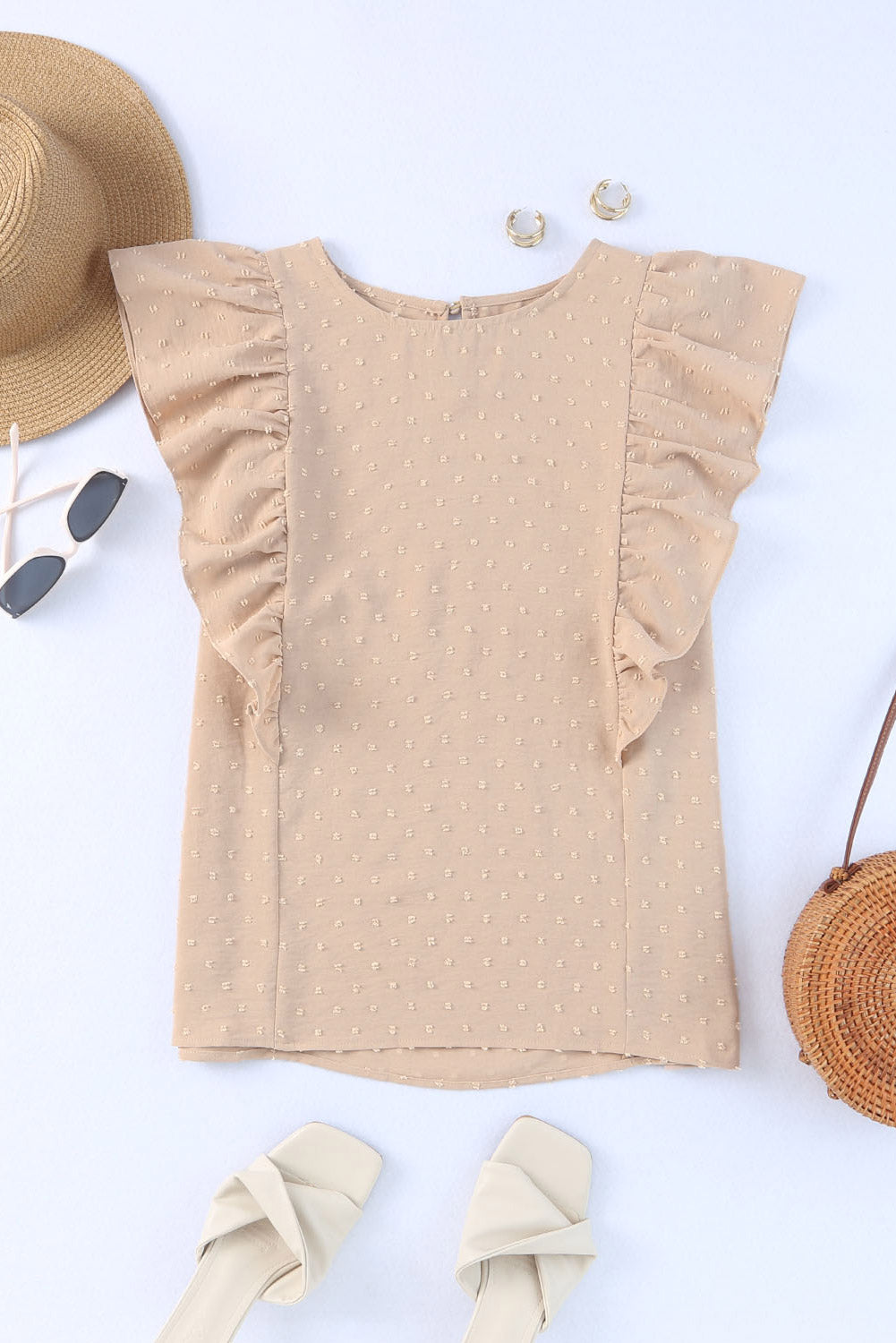 Khaki Swiss Dot Ruffle Armhole Tank Top