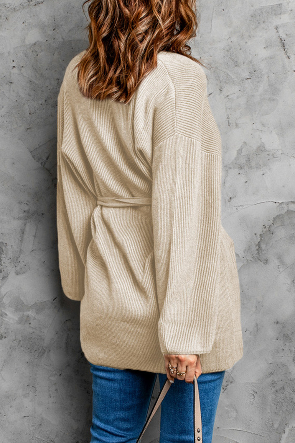 Robe Style Rib Knit Pocketed Cardigan with Belt