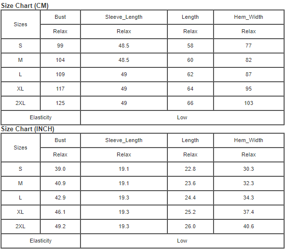 55%Acrylic+45%Cotton•Drop shoulder and loose fit style are perfect for most figure