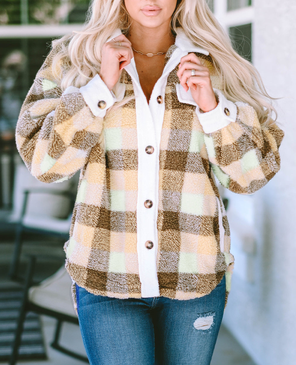 Plaid Sherpa Flap Pocket Shacket