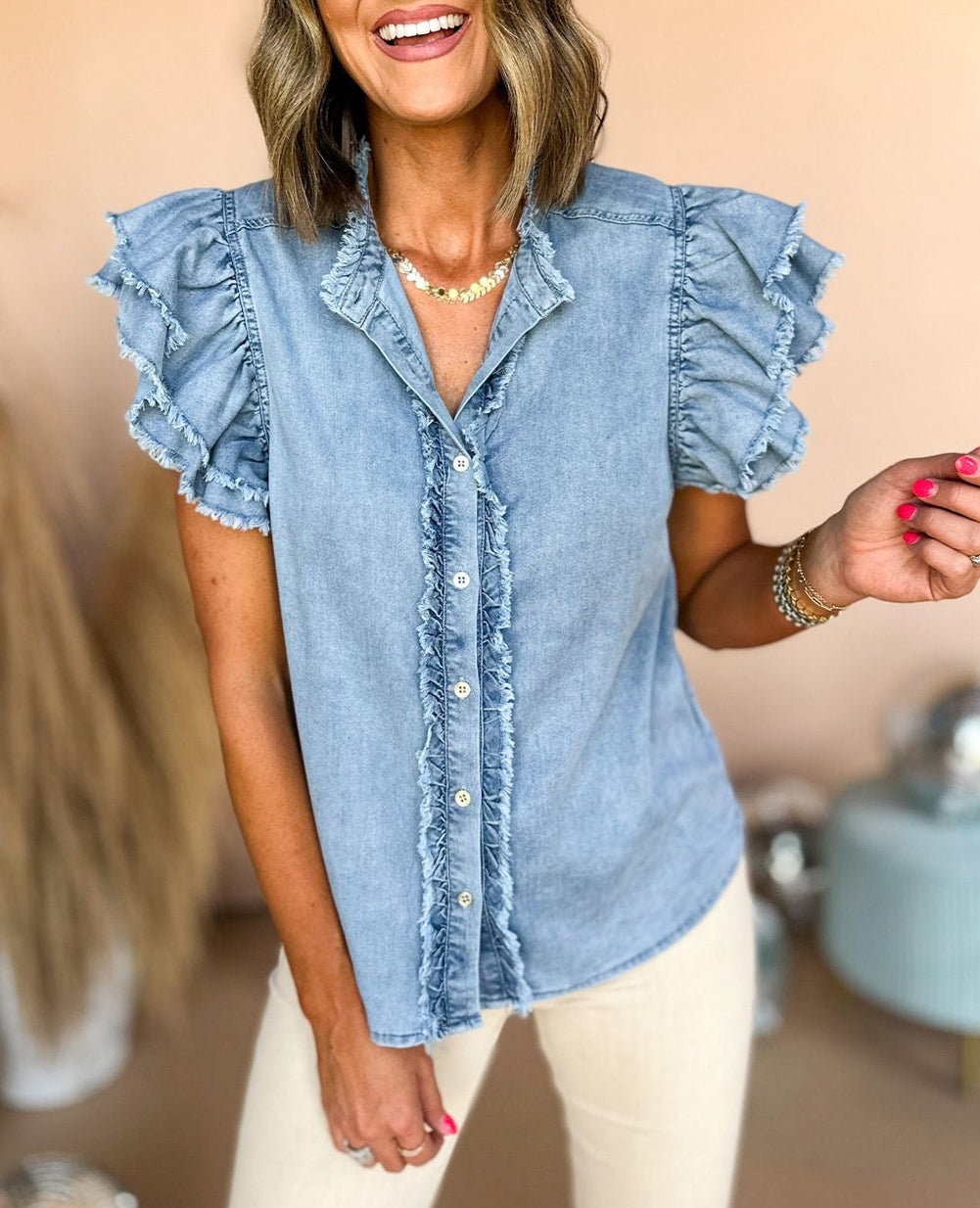 - This ruffled top creates a fluttery and romantic look for modern ladies