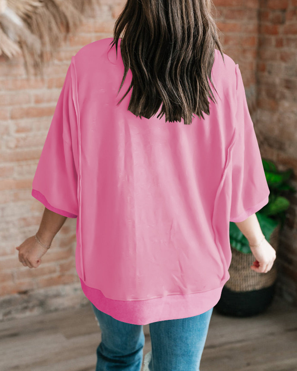 Exposed Seam Chest Pocket Split Loose T Shirt