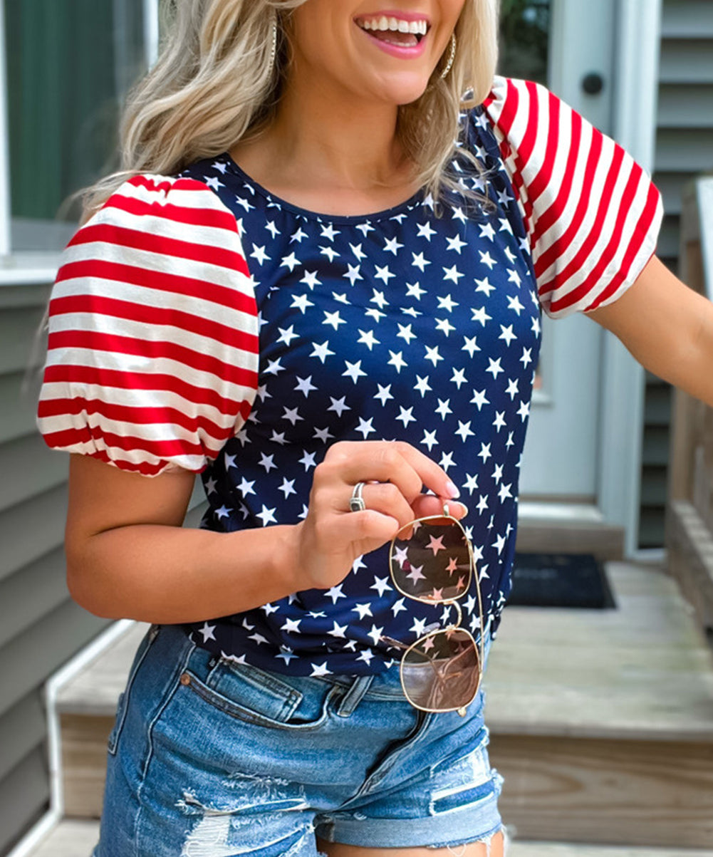 4th Of July Stars Stripes Puff Sleeve T Shirt