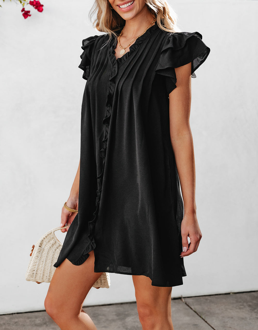 Ruffle Sleeve V Neck Frilled Shift Dress