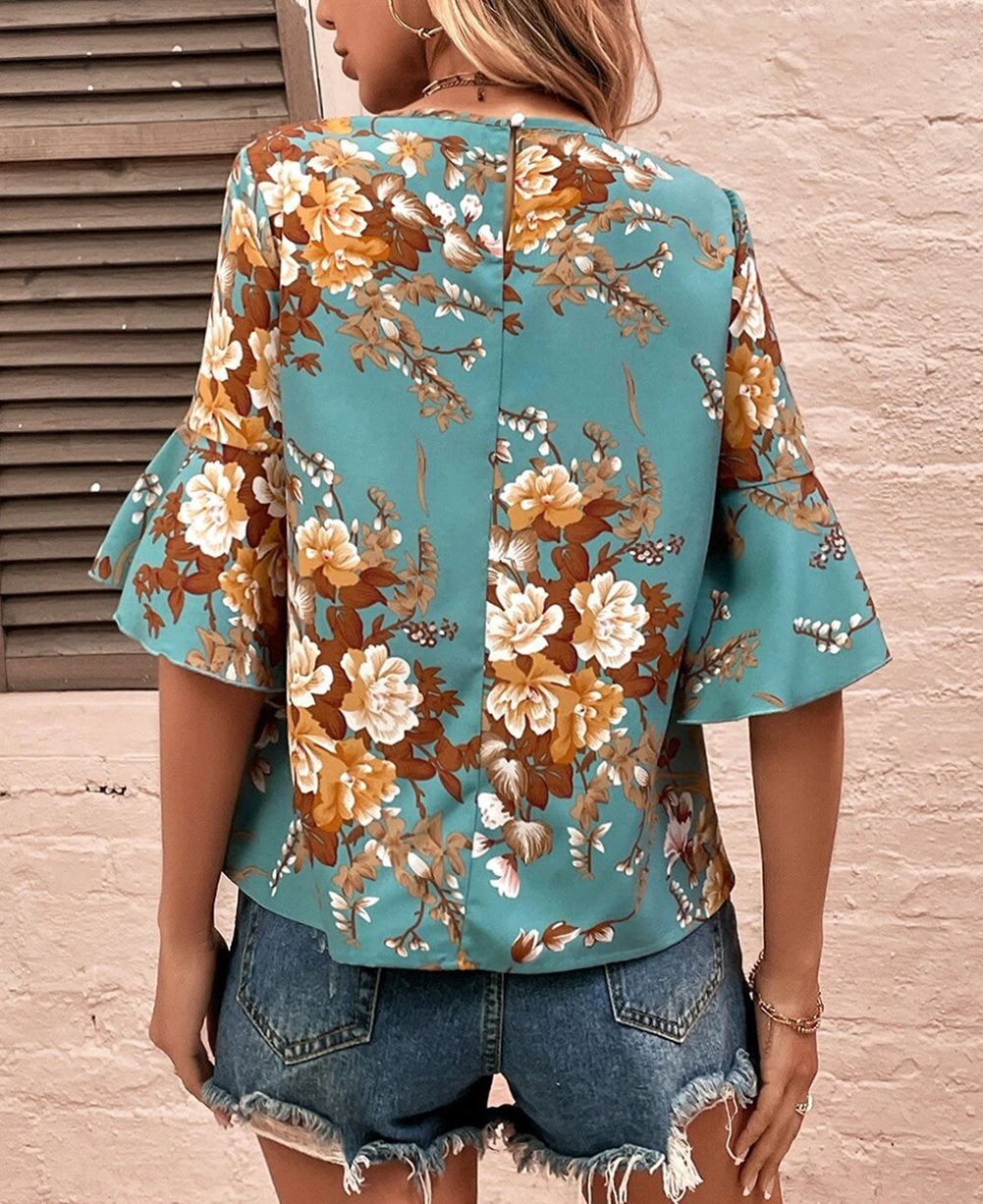 - Add some flair to the wardrobe with this Flare Sleeve Floral Blouse