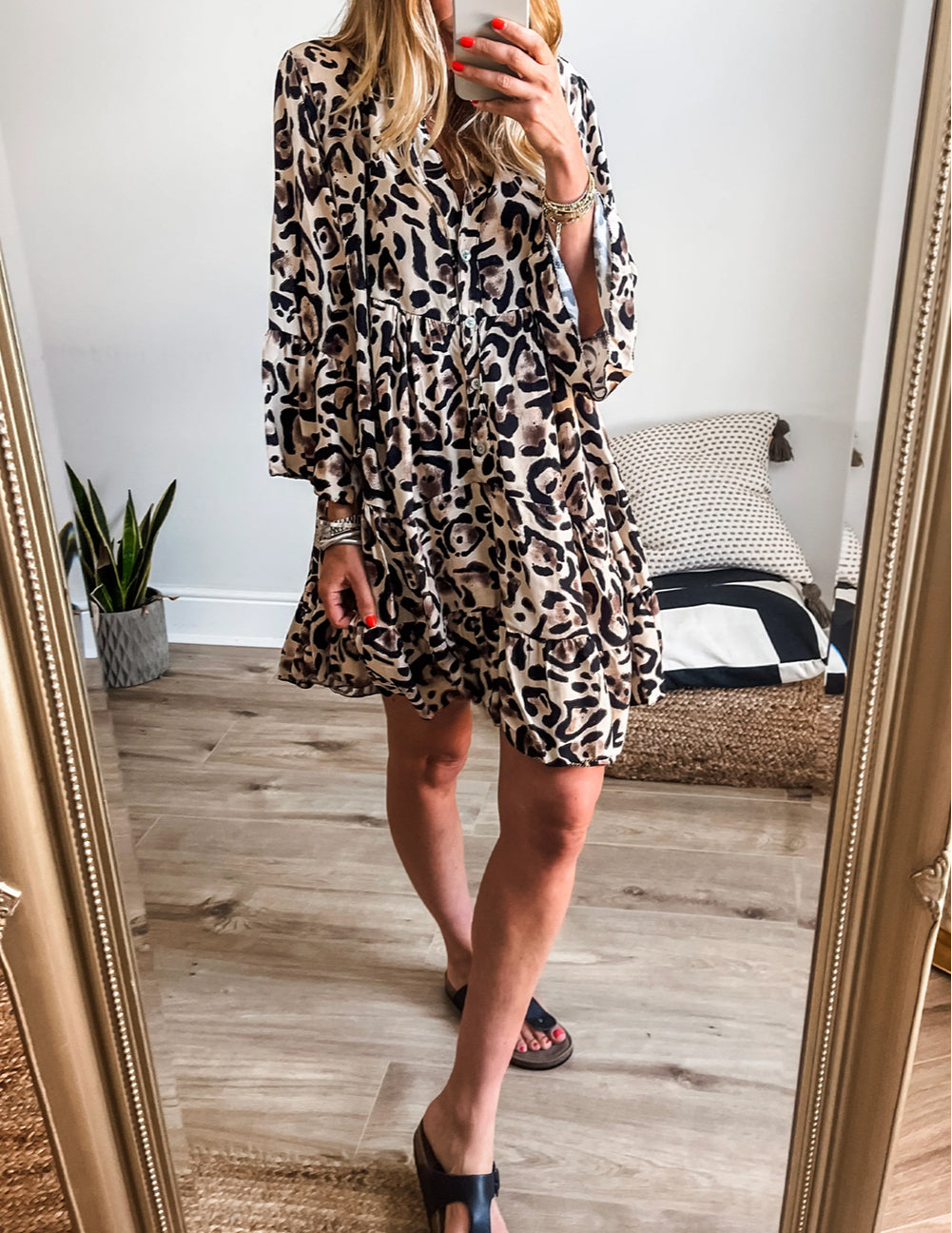 - The leopard mini dress is a bold and flirty choice for a statement outfit.