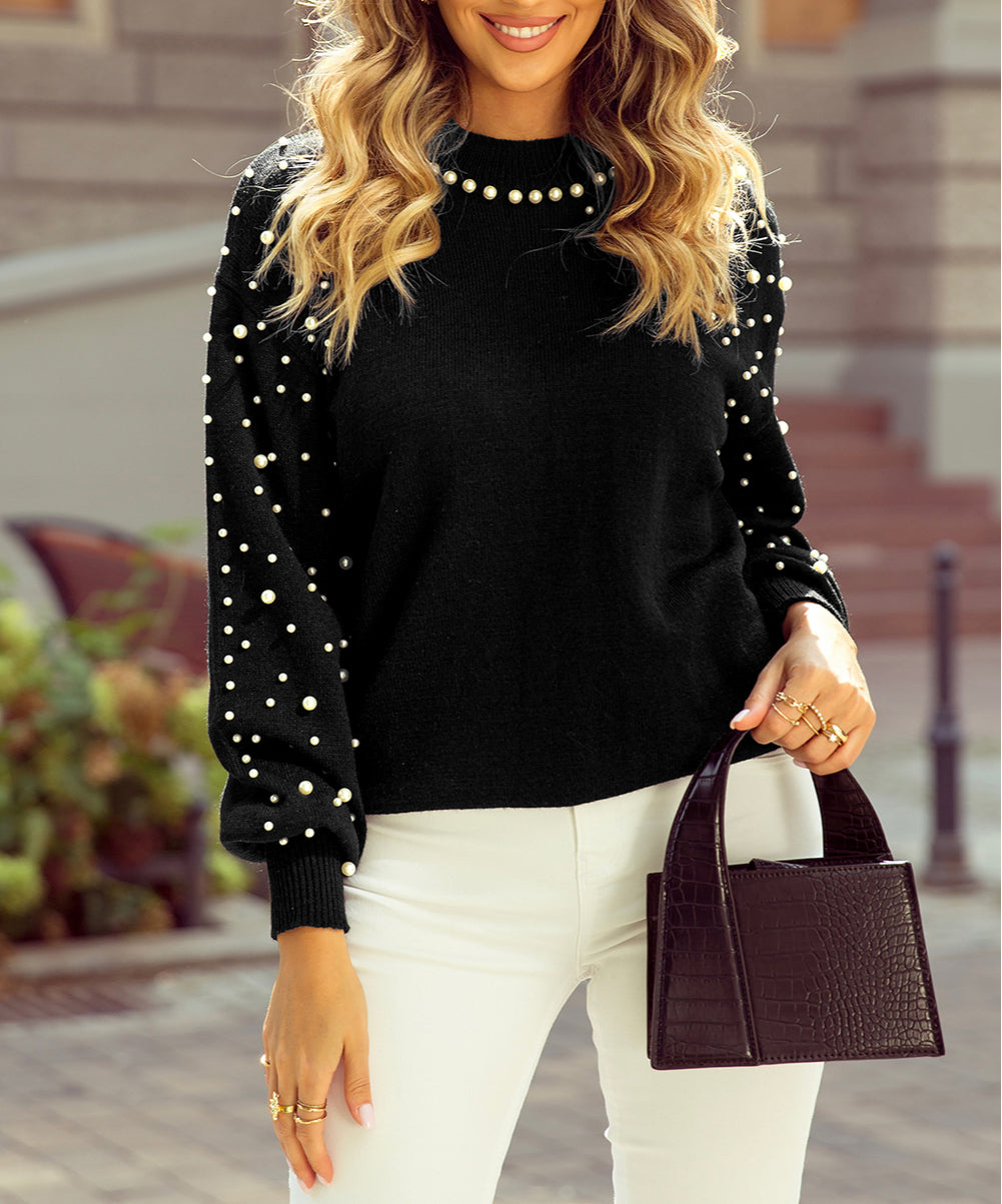 Pearl Beaded Bishop Sleeve Sweater