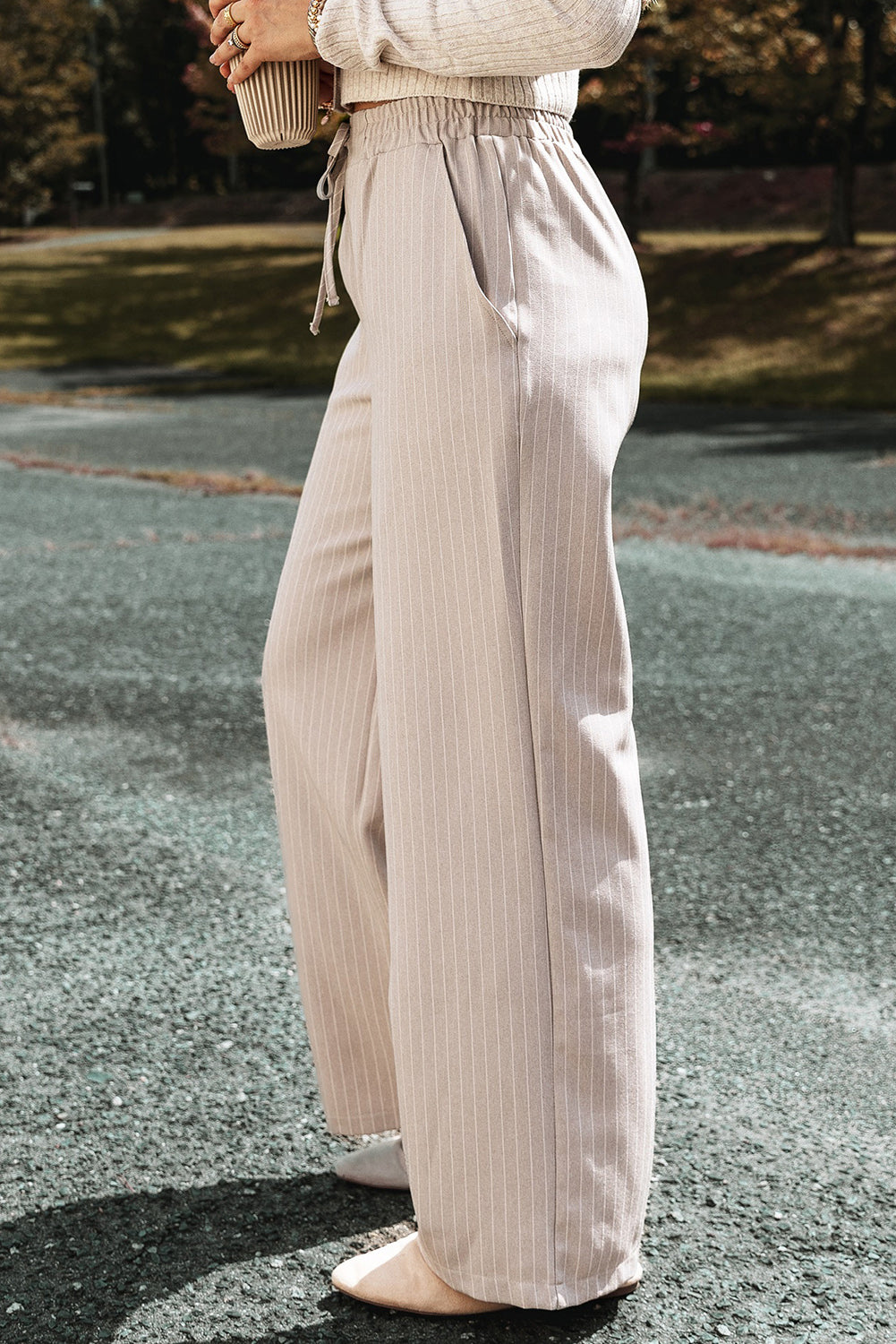 Stripe Casual Elastic Waist Loose Straight Striped Pants