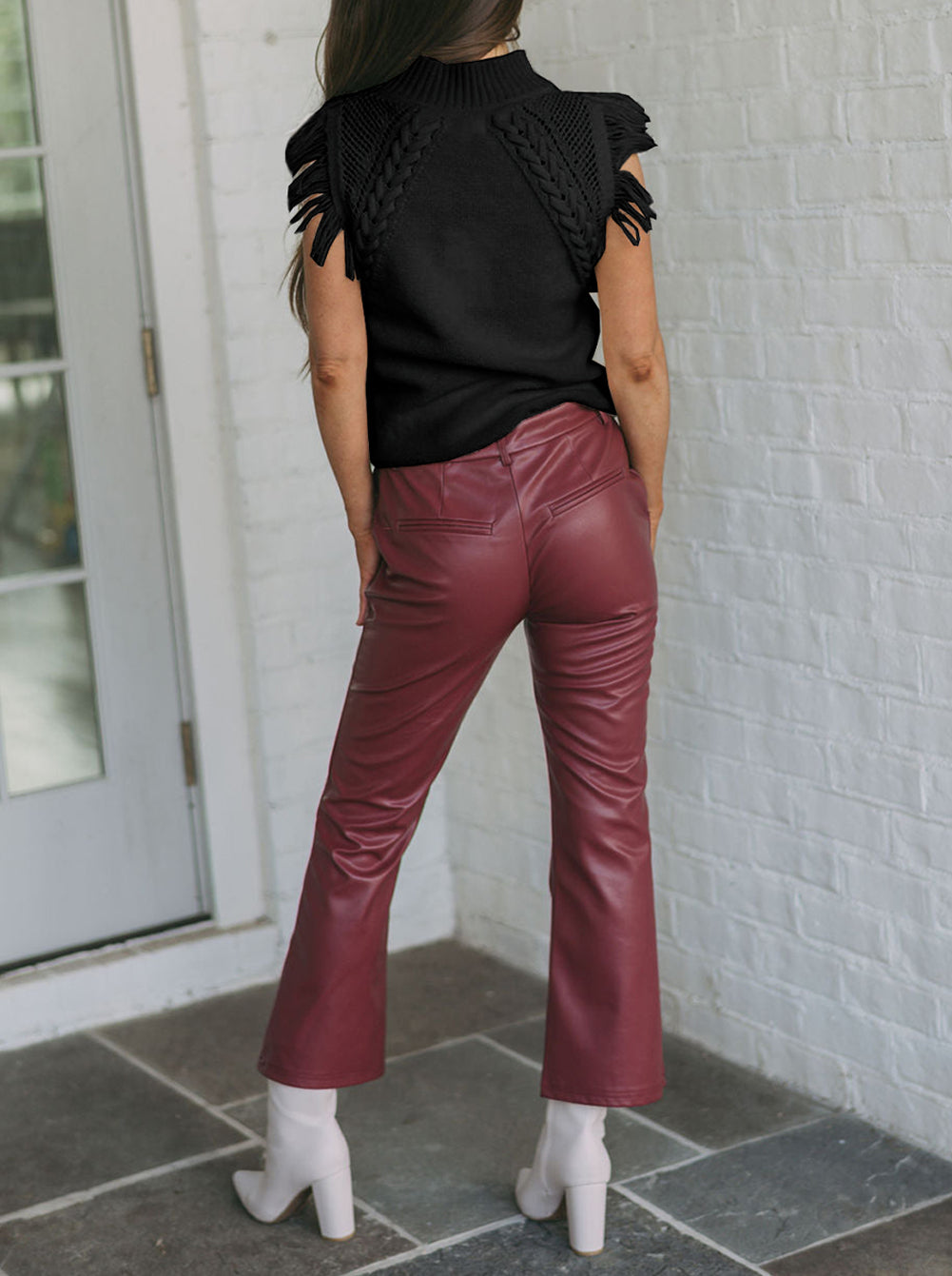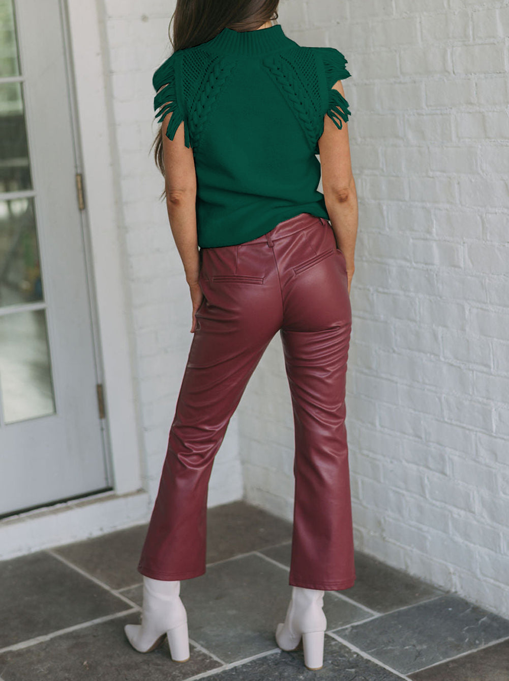 Woven Tasseled Sleeveless Mock Neck Sweater Vest
