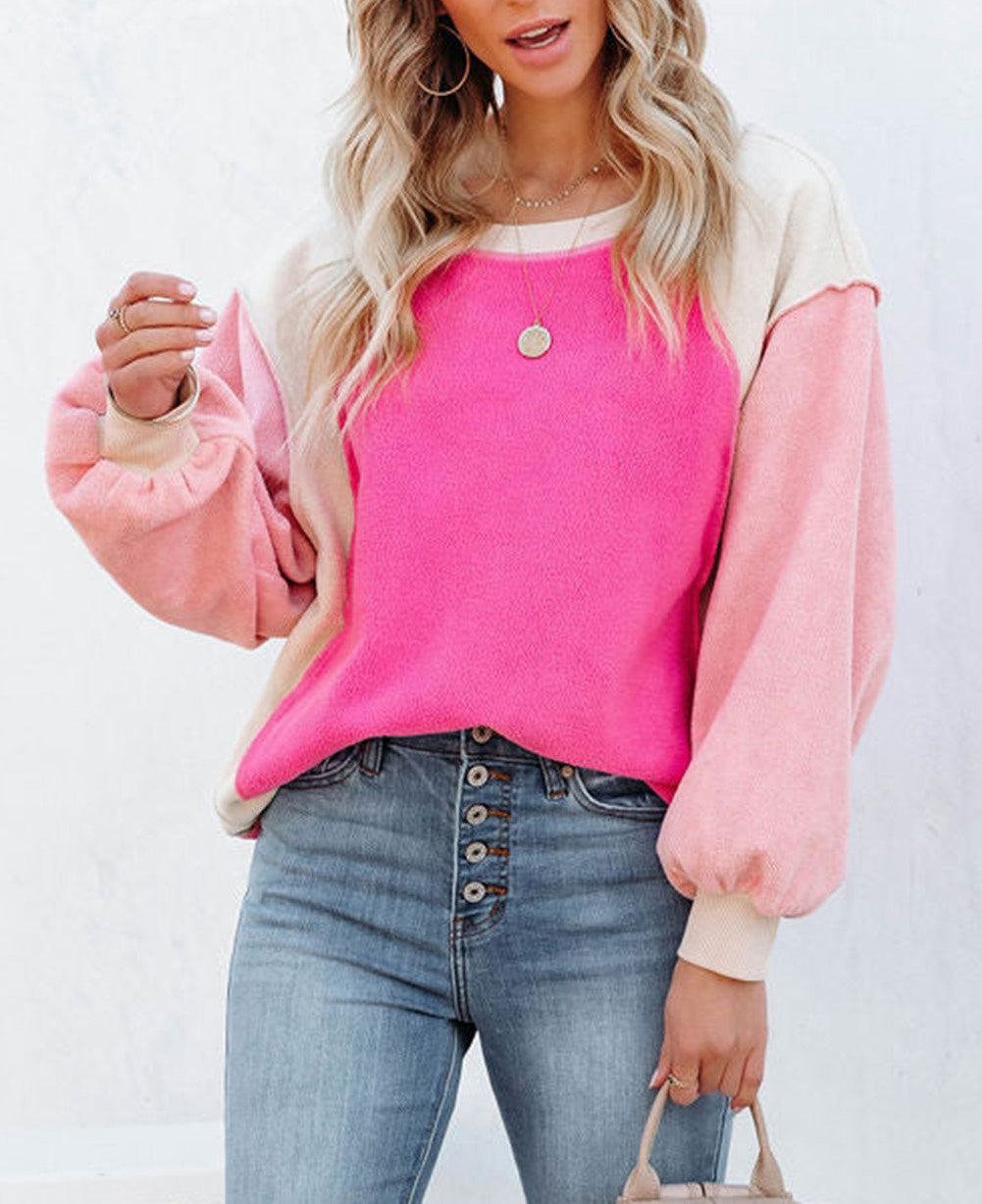 Colorblock Long Sleeve Pullover Fleece Sweatshirt