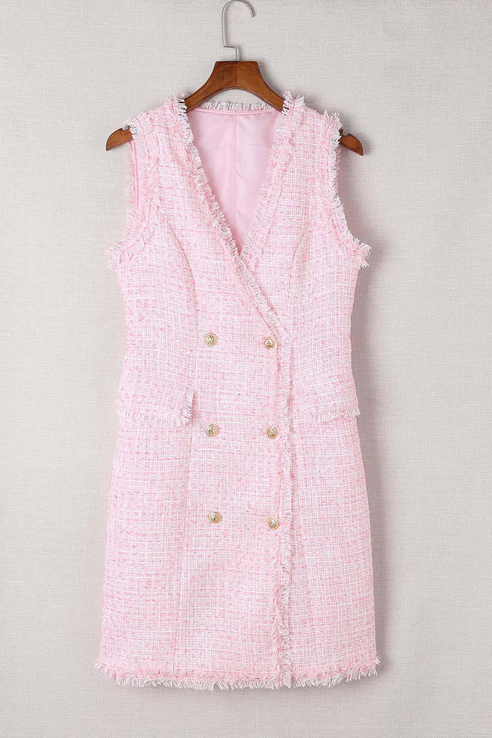 Pink Frayed Edge Double Breasted Tweed Vest Dress