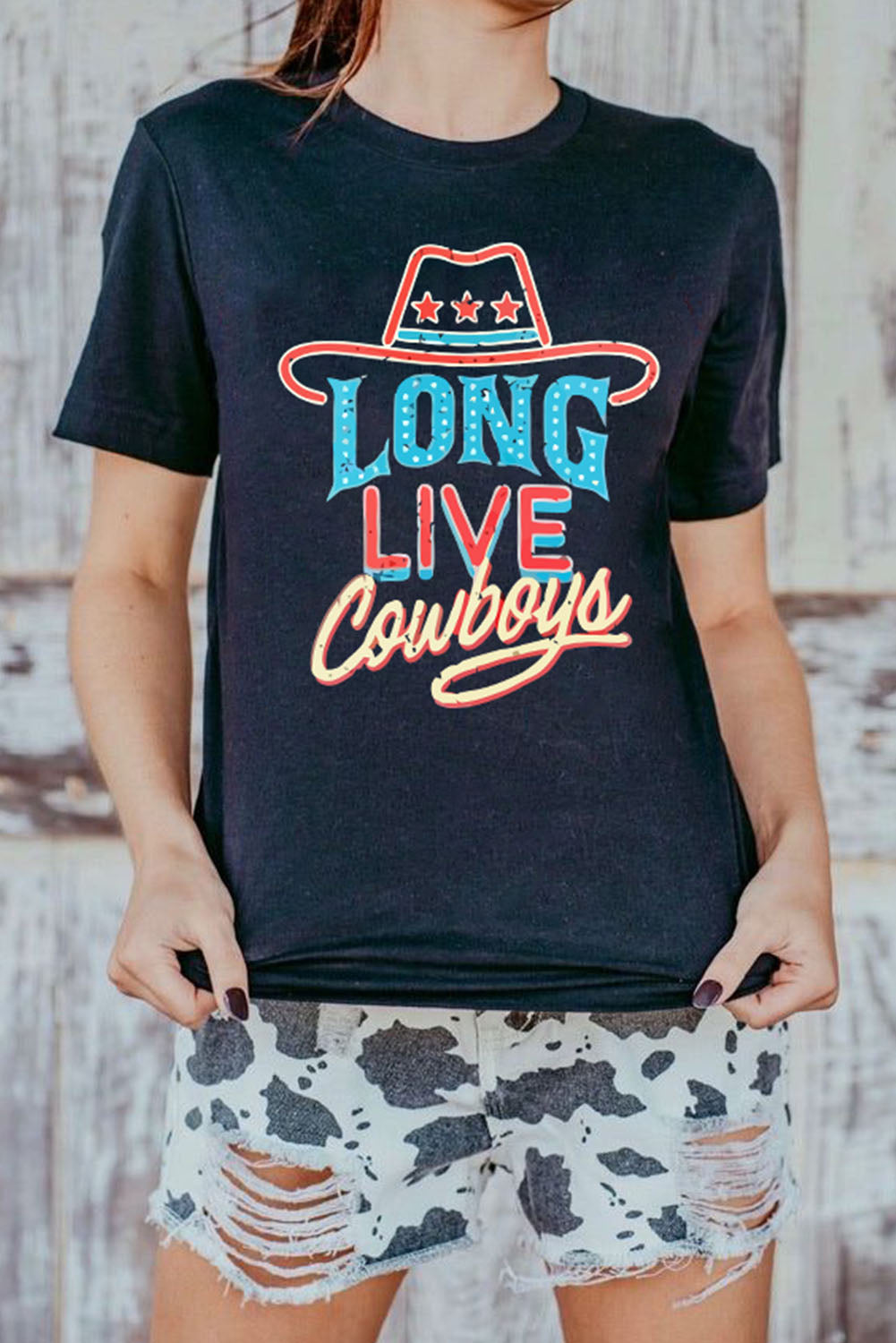 Long Live Cowboys Graphic Print Crew Neck T Shirt