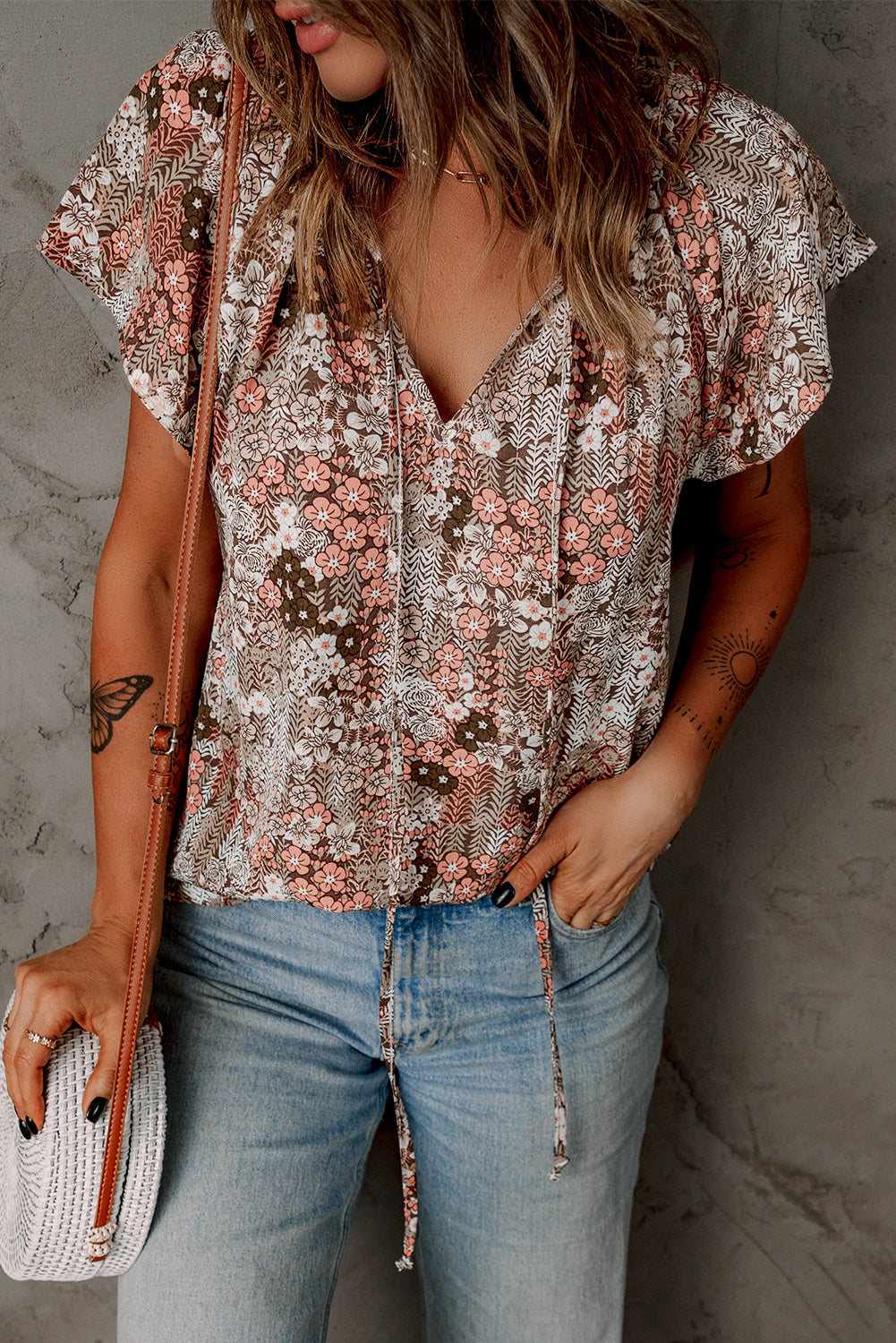 V-neck Short Sleeve Fashion Print Fantasy Fluttering Blouse