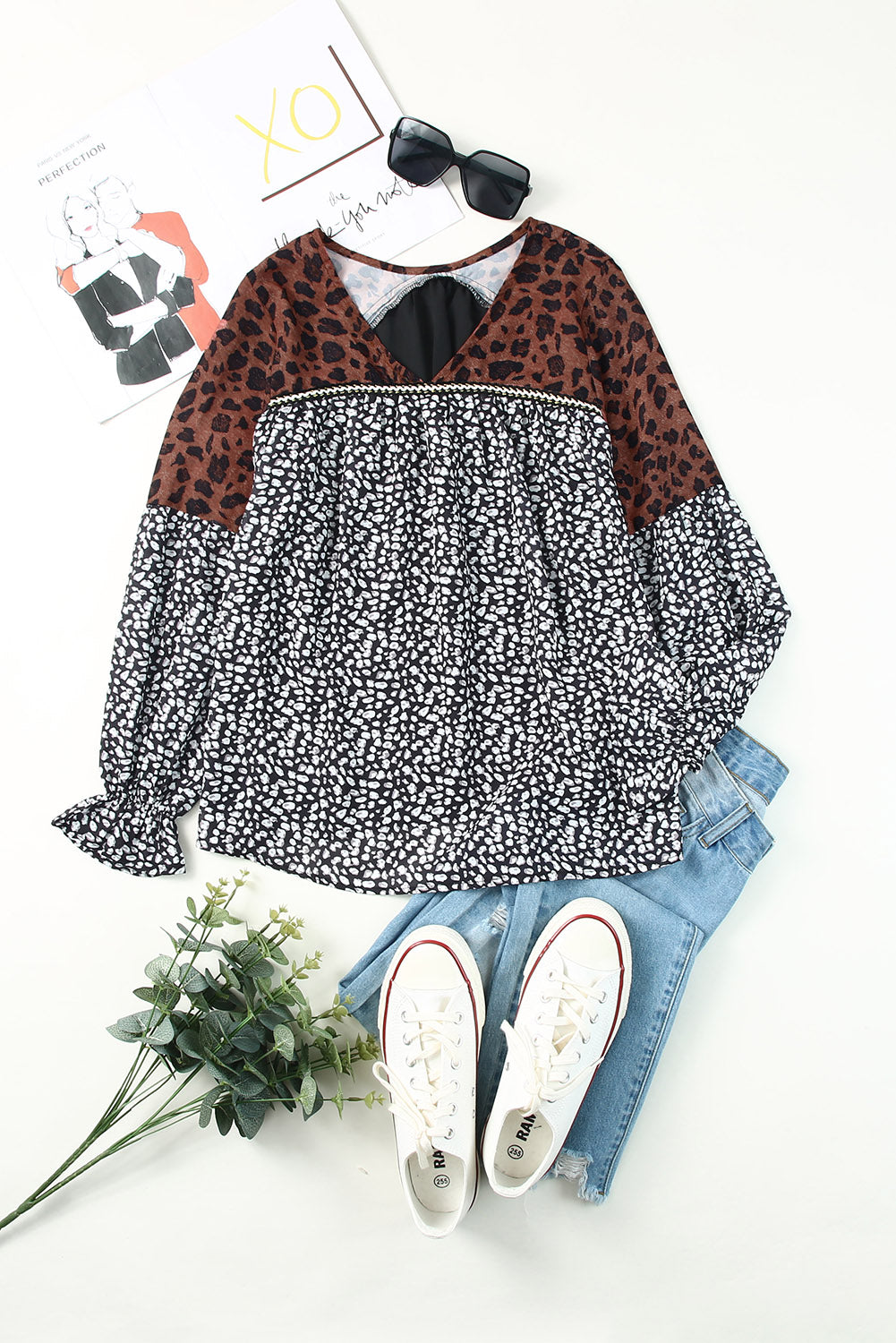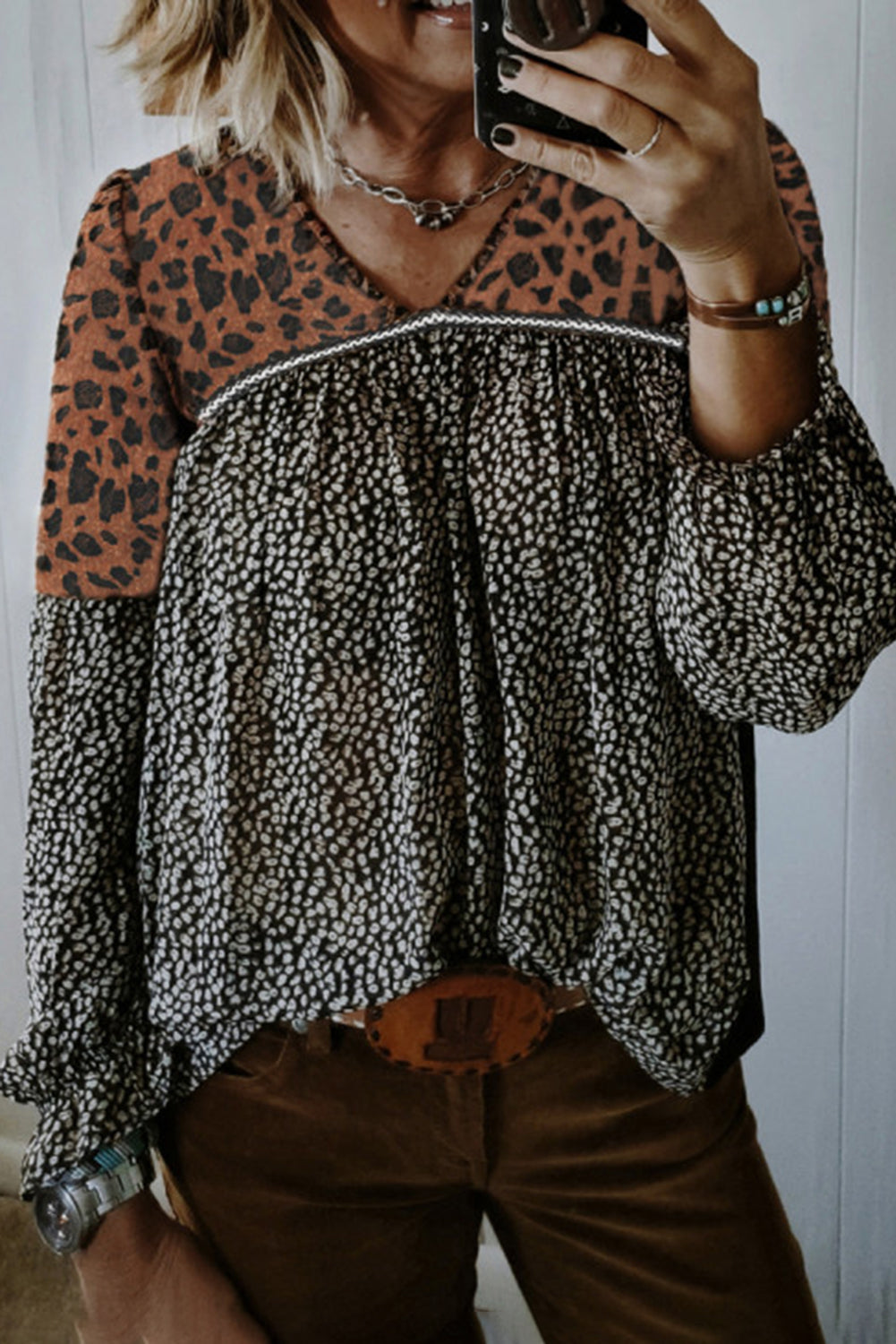 - Distinctive leopard yoke, ditsy spliced balloon sleeves