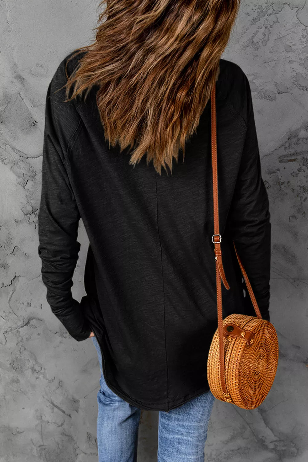 - Featured with a crew neckline, long sleeves, thumb holes, plain color, and loose fit