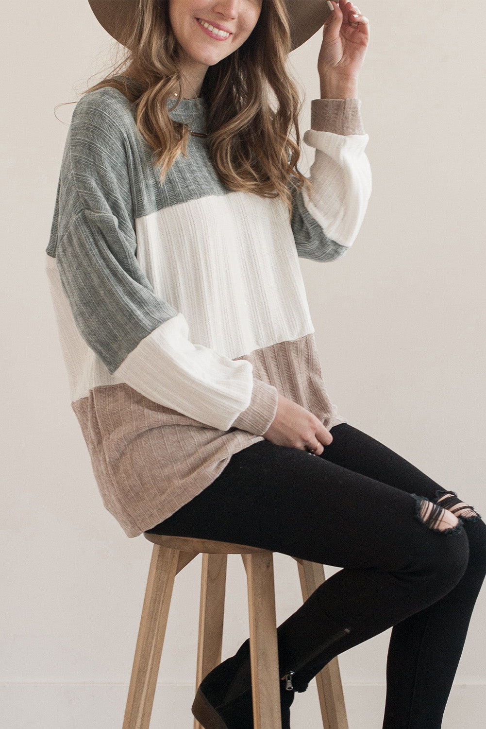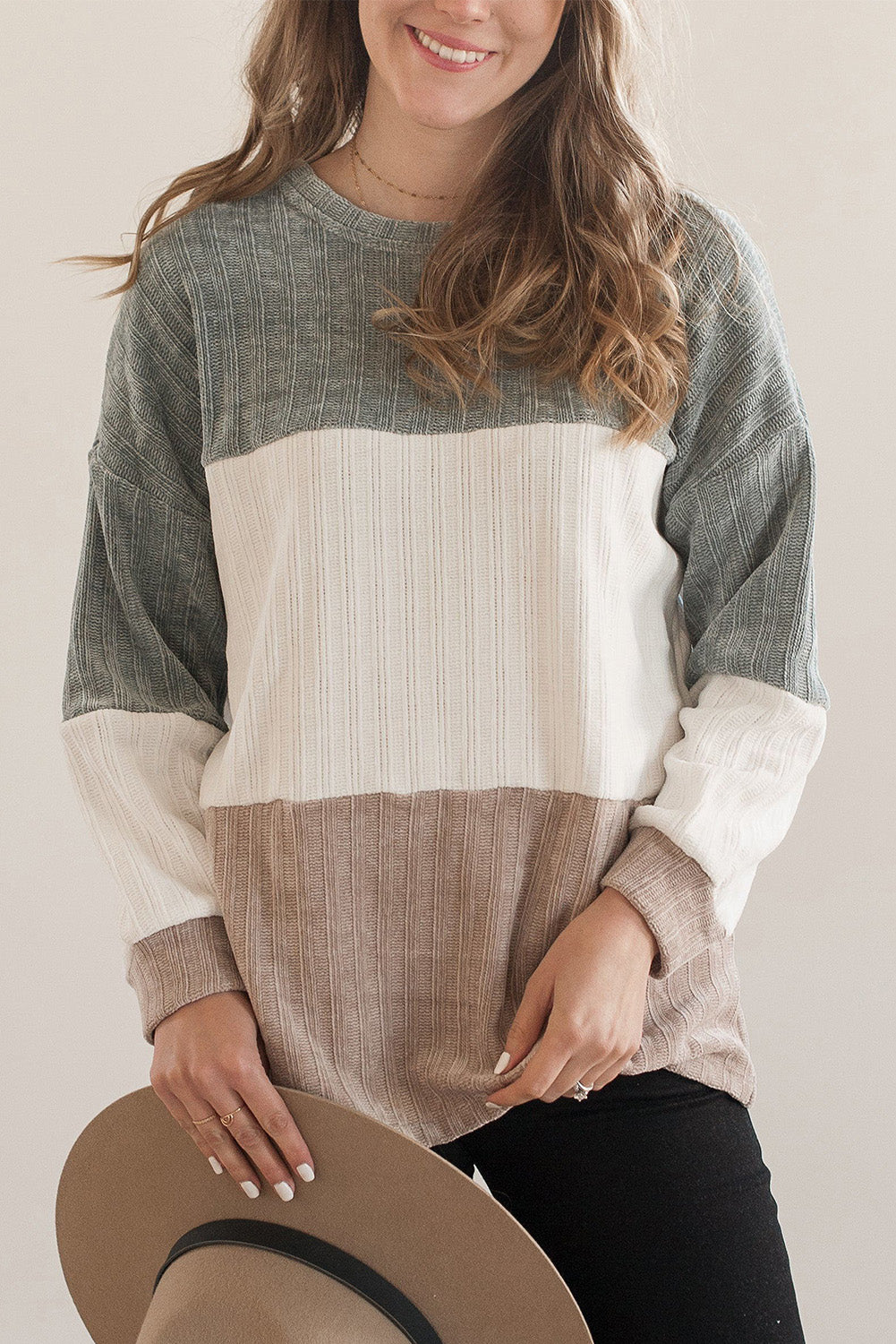 Multicolor Striped Knit Color Block Sweater