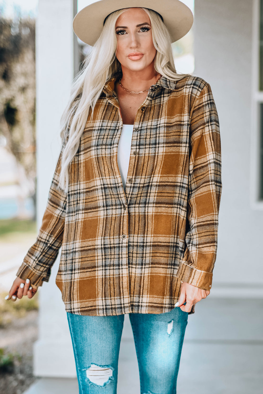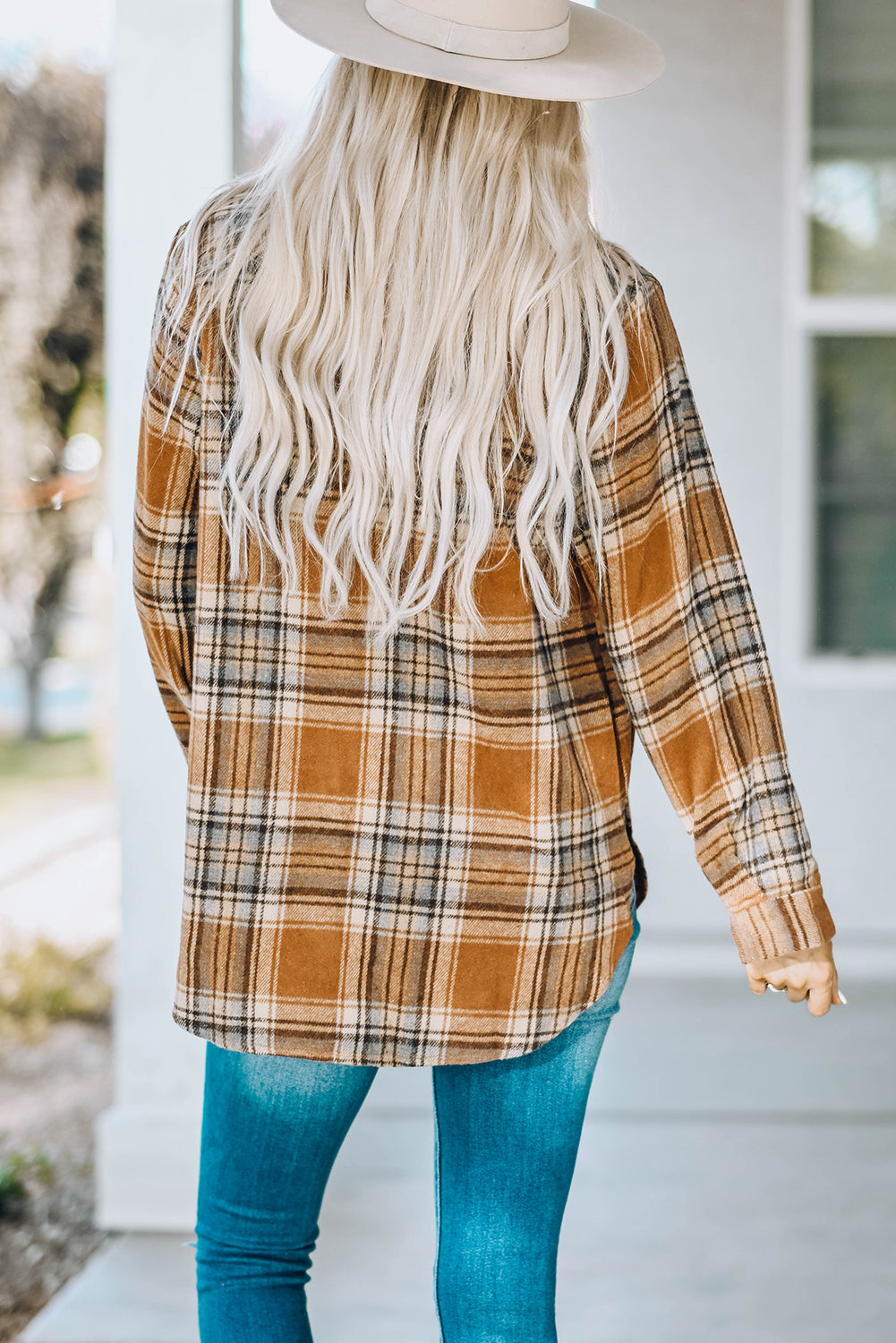 Oversize Rounded Hem Plaid Shirt with Slits