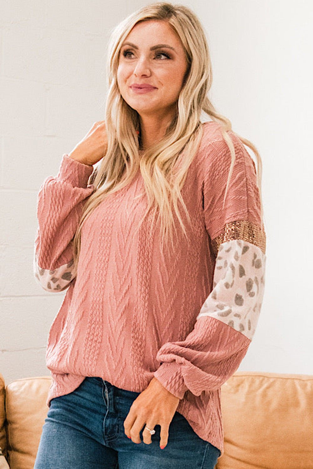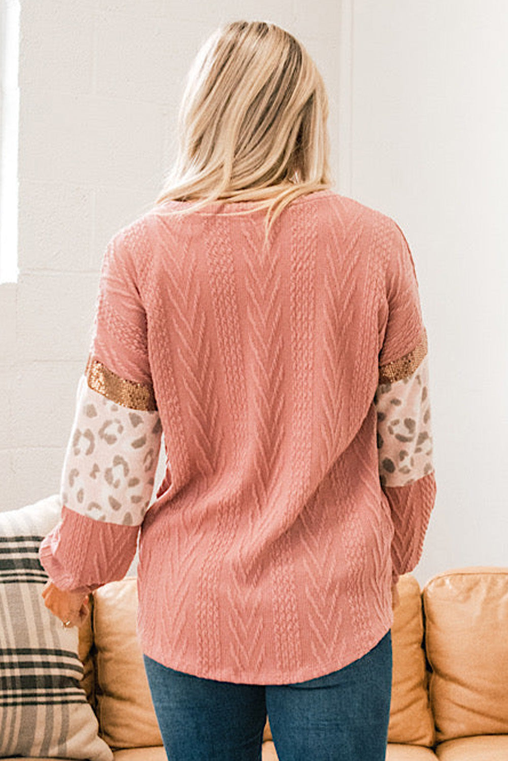Leopard Sequin Sleeves Knit Top 95%Polyester+5%Elastane 95%Polyester+5%Elastane